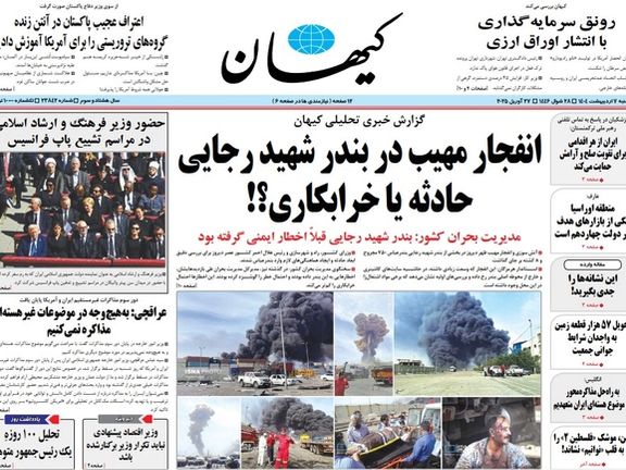 روزنامه کیهان، که مدیر مسئول آن از سوی رهبر جمهوری اسلامی منصوب میشود و به انعکاس غیر مستقیم رویکرد علی خامنهای مشهور است، در گزارش خود از انفجار بندر «شهید رجایی» نوشت: «کانالهای تلگرامی و حسابهای کاربری فیکنیوز داخلی و خارجی معاند در چنین مواقعی فرصت را برای غلبه روایتهای بیپشتوانه خود بر ذهن مخاطب مناسب میبینند.»