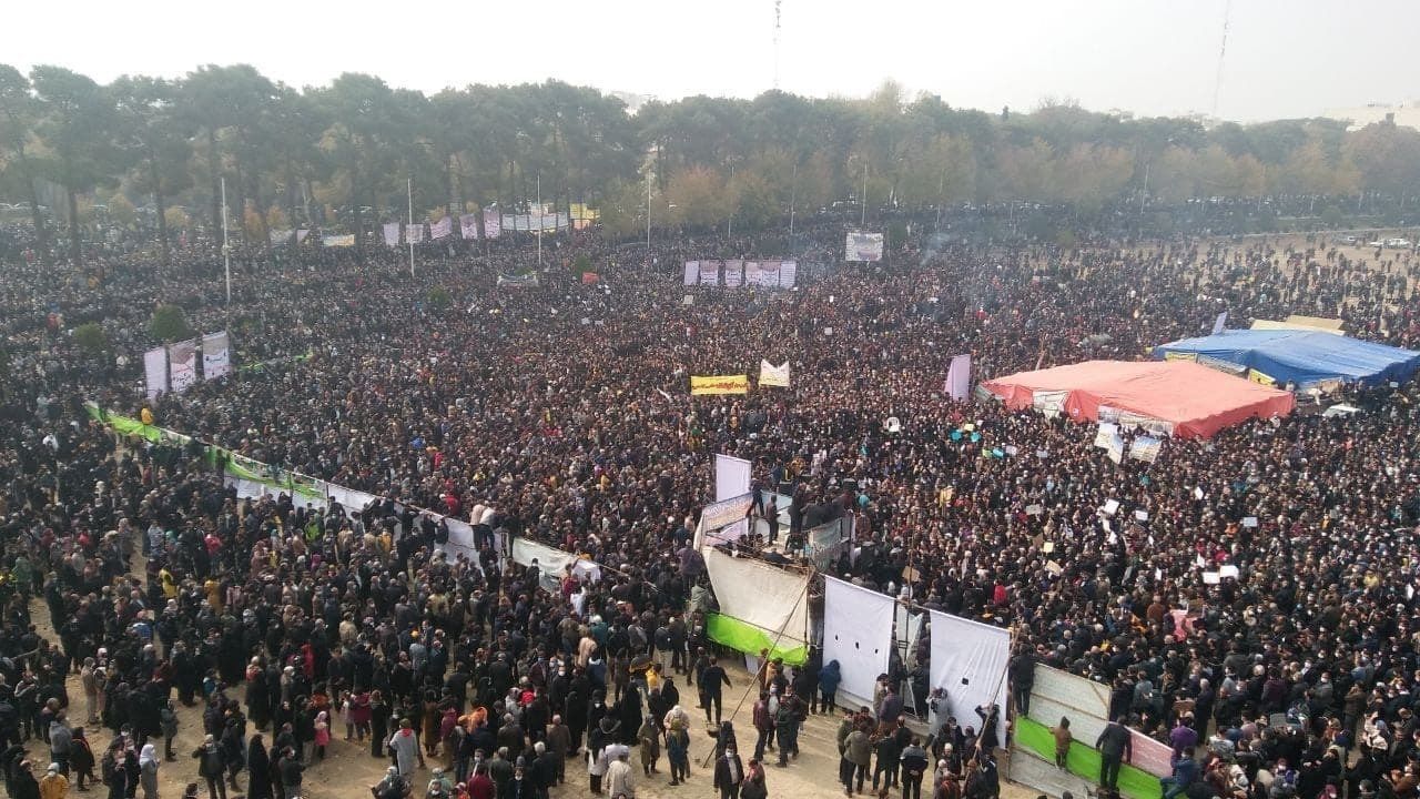 گروه انبوهی از مردم اصفهان روز جمعه در دوازدهمین روز تجمع اعتراضی کشاورزان به آنان پیوستند و در بستر خشک زایندهرود و اطراف آن تجمع کردند.