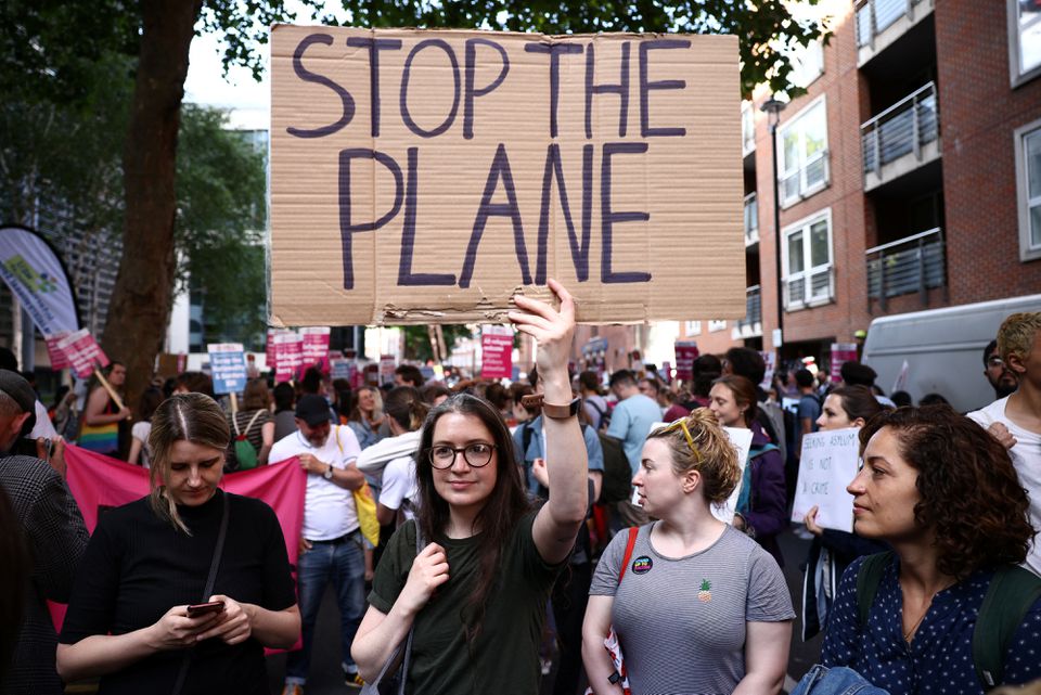 لیز تراس، وزیر امور خارجه بریتانیا تصمیم دولت این کشور برای اخراج پناهجویان را «اخلاقی» و «قانونی» خواند و گفت او نمیداند دقیقا چندین نفر در پرواز روز سهشنبه به روآندا فرستاده خواهند شد. تراس افزود افرادی که از این پرواز میمانند، در پرواز بعدی فرستاده خواهند شد.