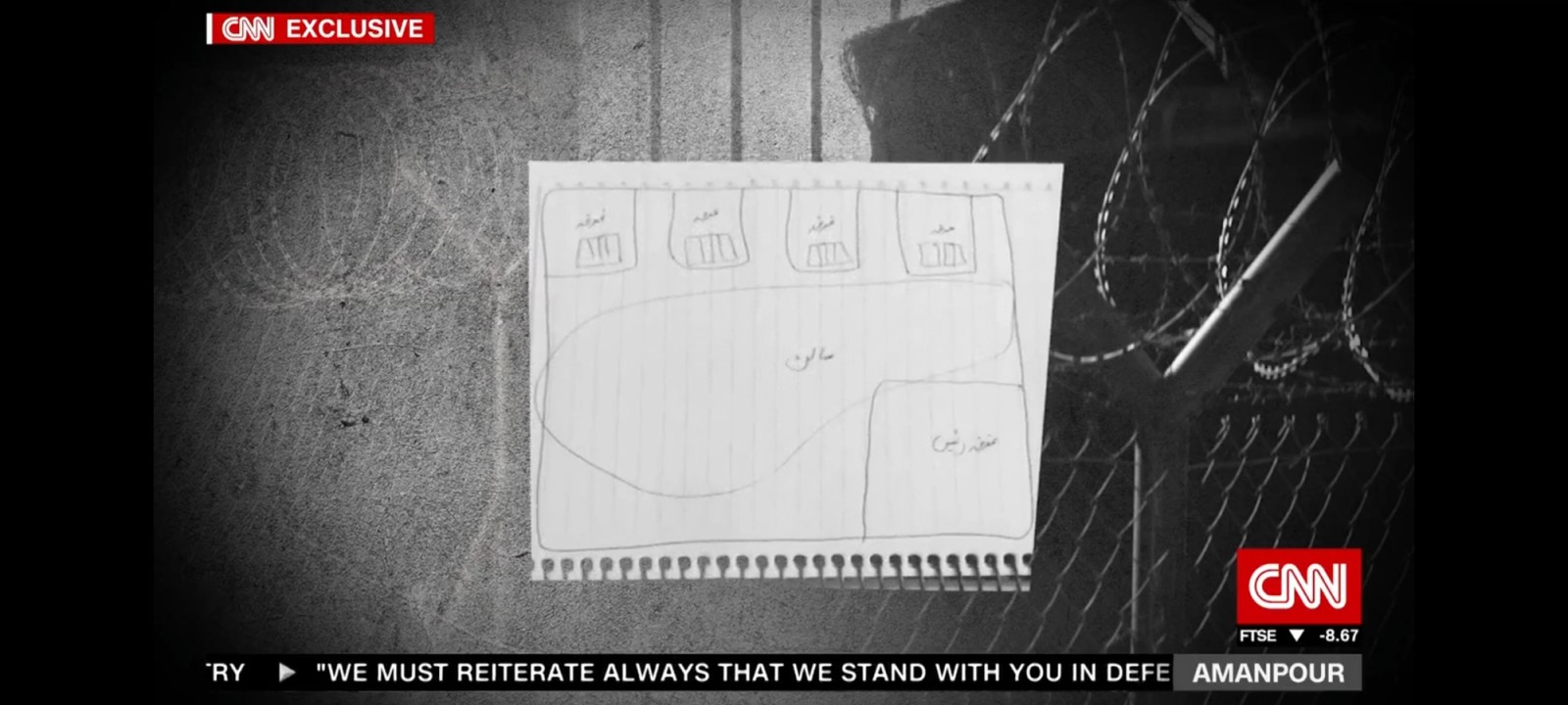 حنا نقشه بازداشتگاهی که پلیس در آنجا معترضان را مورد آزار قرار می‌داده برای سی‌ان‌ان کشیده است.