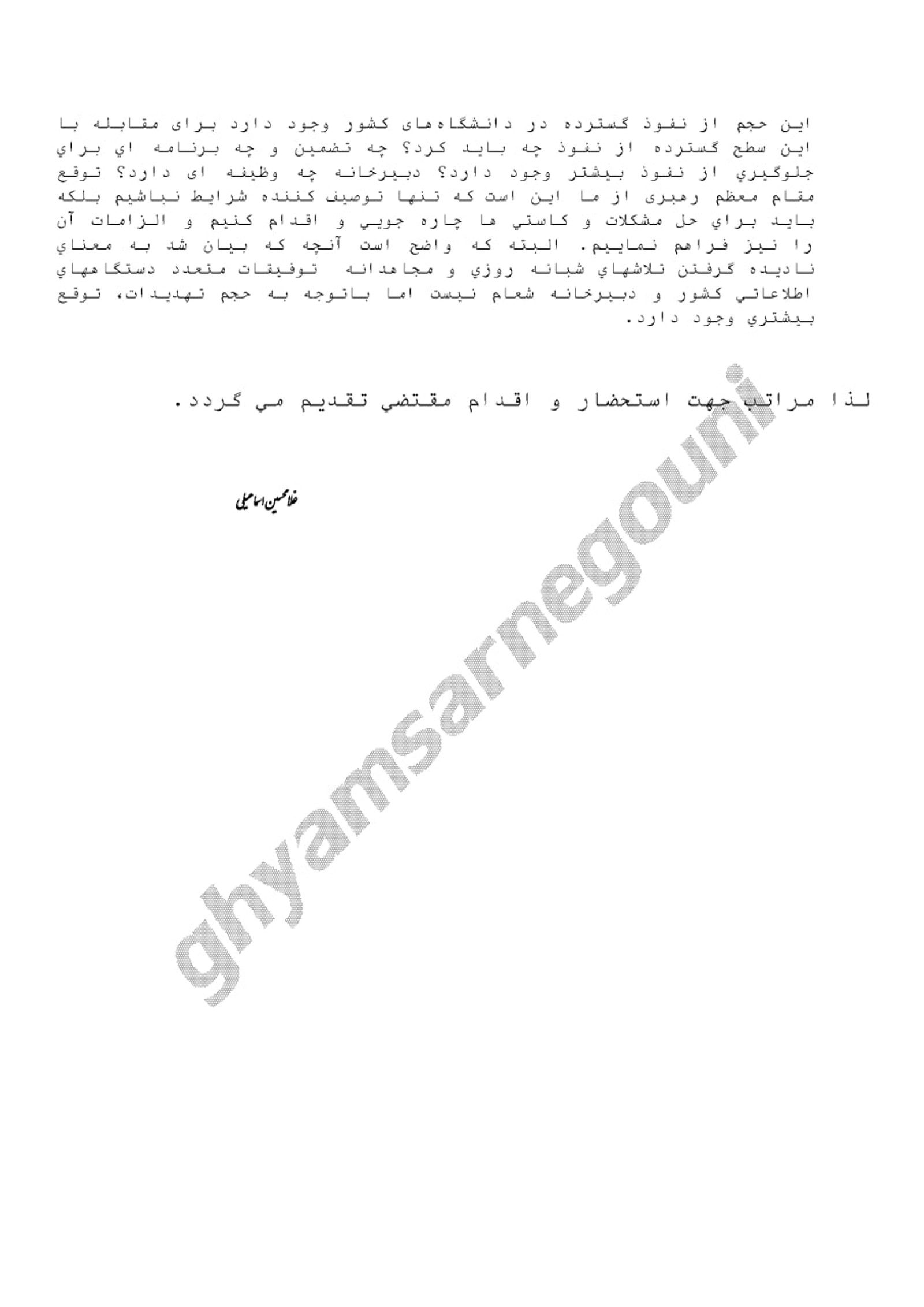 در این نامه نوشته شده که نهادهای امنیتی از برخی از اعترات در مهر و آبان غافلگیر شده و «پیش‌بینی و پیشگیری لازم» را انجام نداده‌اند.