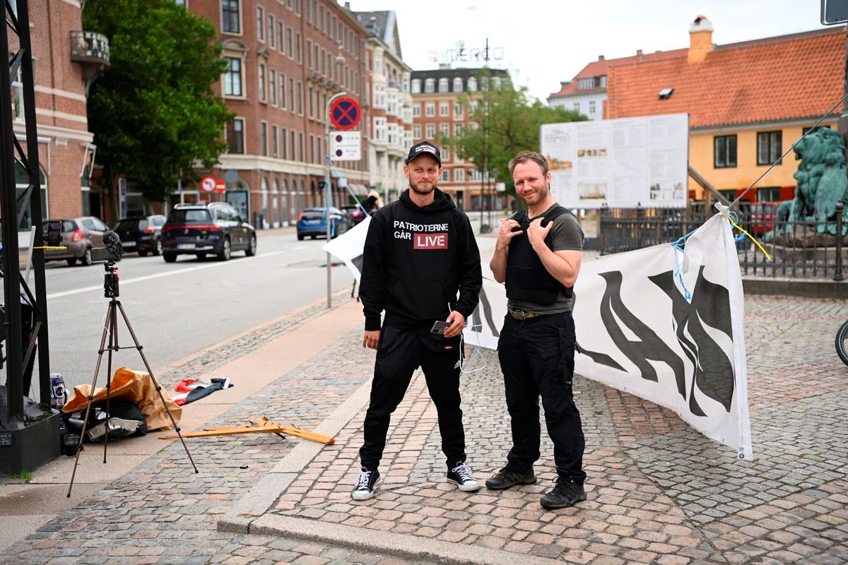 دو عضو گروه «وطن‌پرستان دانمارکی» در کپنهاگ مقابل سفارت عراق نسخه‌ قرآن را به آتش کشیدند