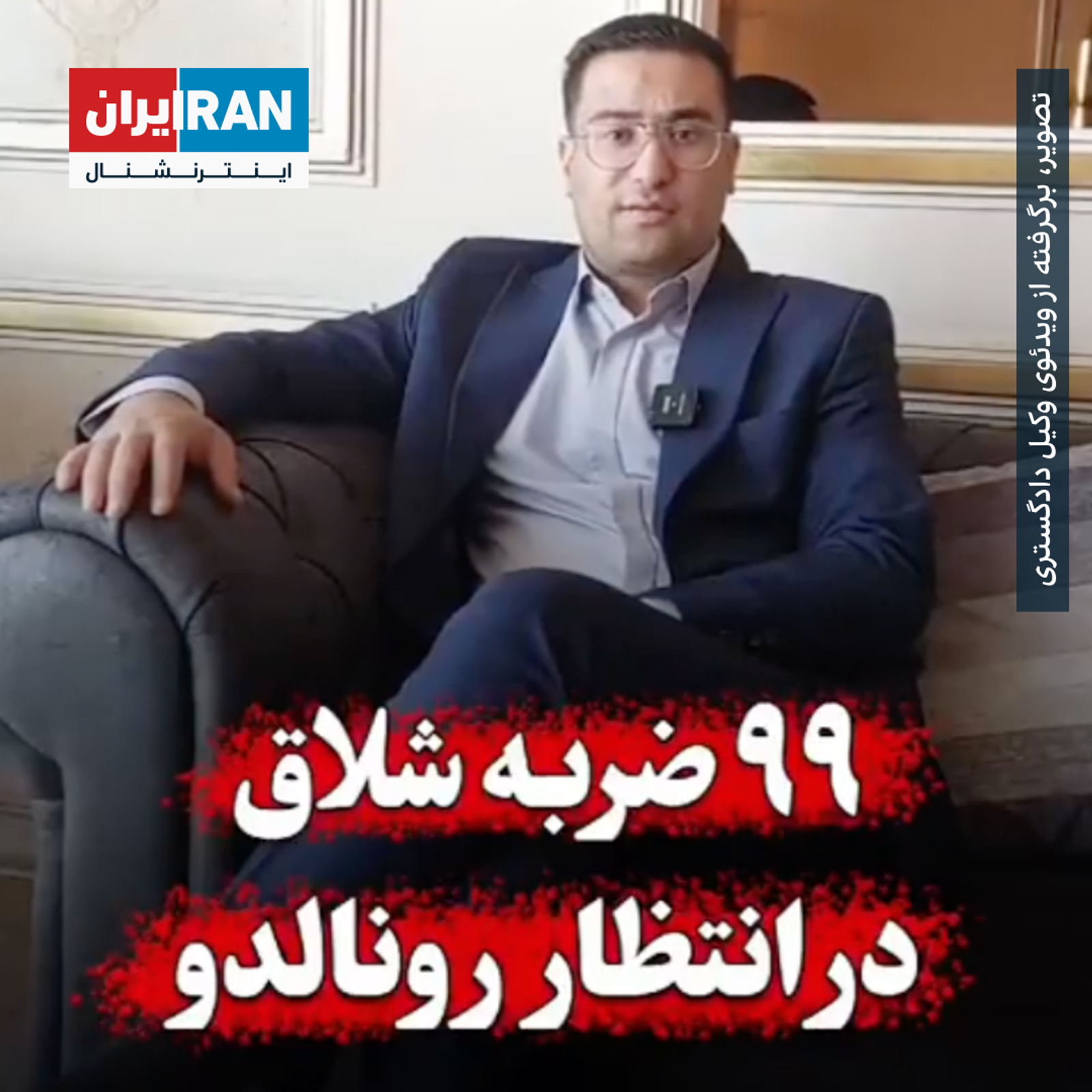 علی گندمی، وکیل پایه یک دادگستری در این ویدئو که به نظر می‌رسد برای تبلیغ دفتر وکالت او ساخته شده است، مدعی می‌شود براساس ماده‌ای از قانون مجازات اسلامی،‌ می‌توان رونالدو را محکوم کرد و ۹۹ ضربه شلاق در انتظار اوست.