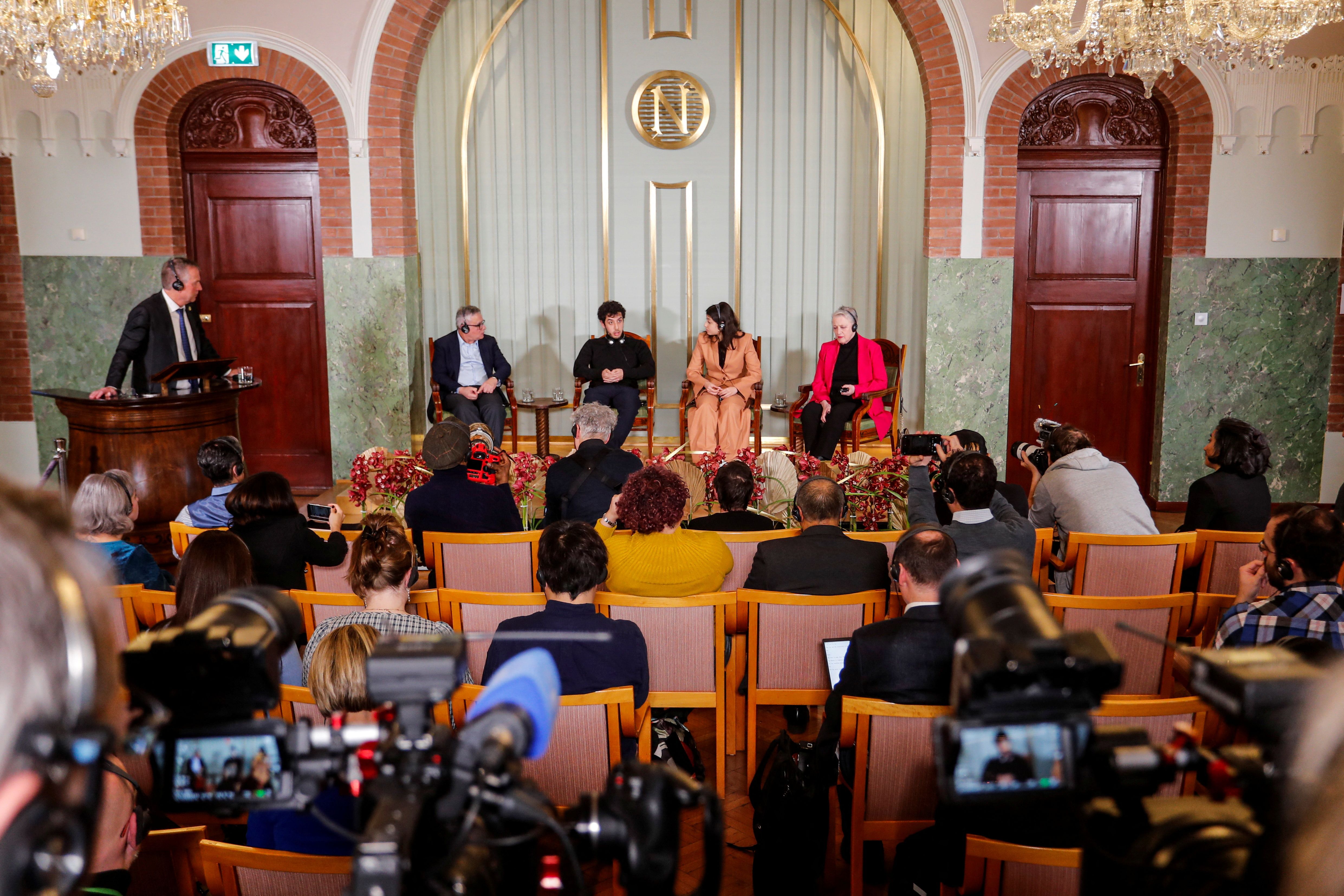 روز شنبه ۱۸ آذر، یک روز پیش از برگزاری مراسم اهدای جایزه نوبل صلح به نرگس محمدی، فعال حقوق بشر زندانی، نشستی مطبوعاتی با حضور خانواده او در اسلو برگزار شد. محمدی در پیامی که در این نشست خوانده شد، بار دیگر بر مبارزه با جمهوری اسلامی تاکید کرد.