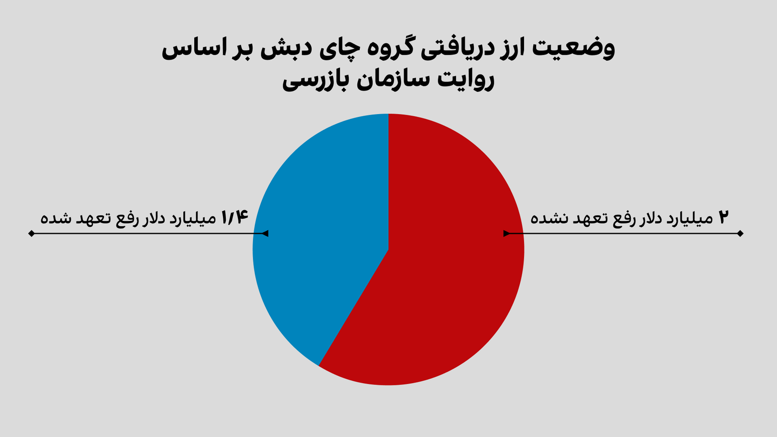 روایت‌های رسمی درباره فساد چای از نظر عدد و رقم به شدت مبهم‌اند اما حتی اگر سخنان رییس سازمان بازرسی را یک‌سره بپذیریم، مالک چای دبش دو میلیارد دلار ارز نیمایی دریافت کرده که رفع تعهد در مقابل آن انجام نداده. یعنی به اندازه دو میلیارد دلار دریافتی، کالا به کشور وارد نکرده است.