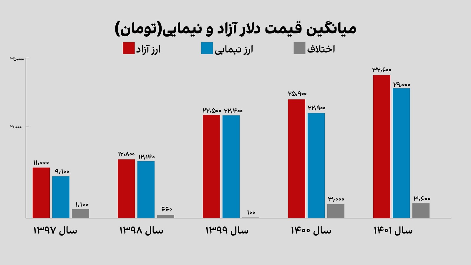 این نمودار میانگین قیمت دلار آزاد و نیمایی در زمان مورد بحث است که گفته می‌شود فساد در آن اتفاق افتاده است.