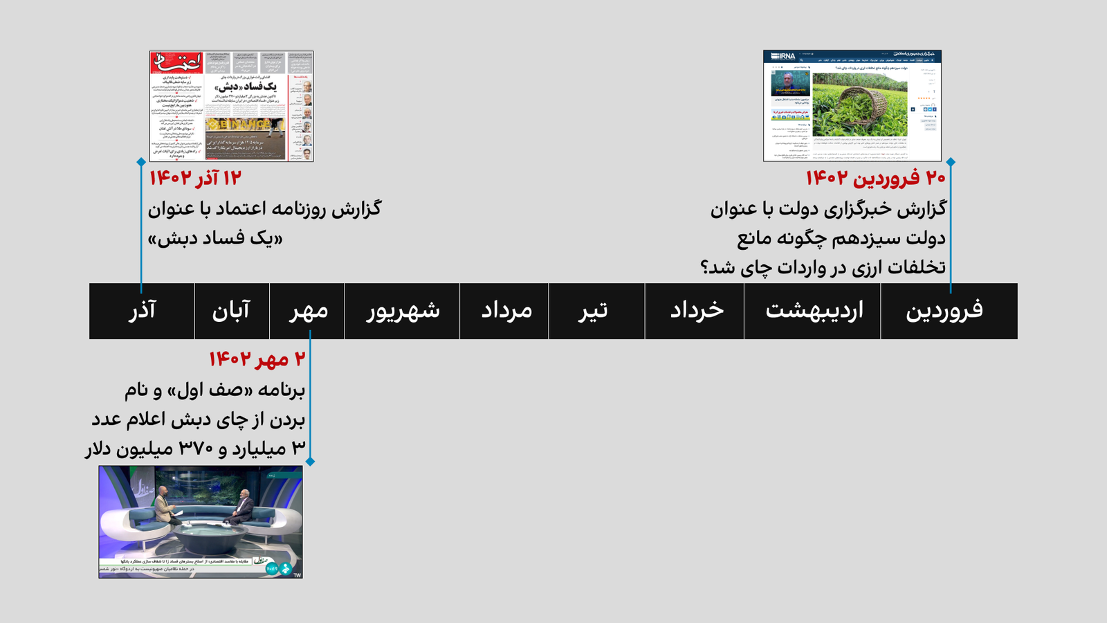 موضوع همان‌جا ماند تا اینکه حالا، دو ماه‌ونیم پس از آن برنامه صف اول و هشت ماه بعد از گزارش صدا و سیما، همه از فساد «چای دبش» بگویند.