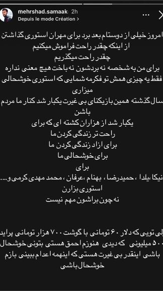 مهرشاد سماک، برادر مهران سماک درباره خوشحالی برخی از کاربران فضای مجازی پس از برد تیم ملی نوشت: «سال گذشته همین بازیکنان بی غیرت یکبار شد کنار ما مردم باشند؟ یکبار شد برای نيكا، يلدا، حميدرضا، بهنام، عرفان، محمدمهدی کرمی و... که (جان دادند) استوری بذارن؟ نه چون براشون مهم نیست.»