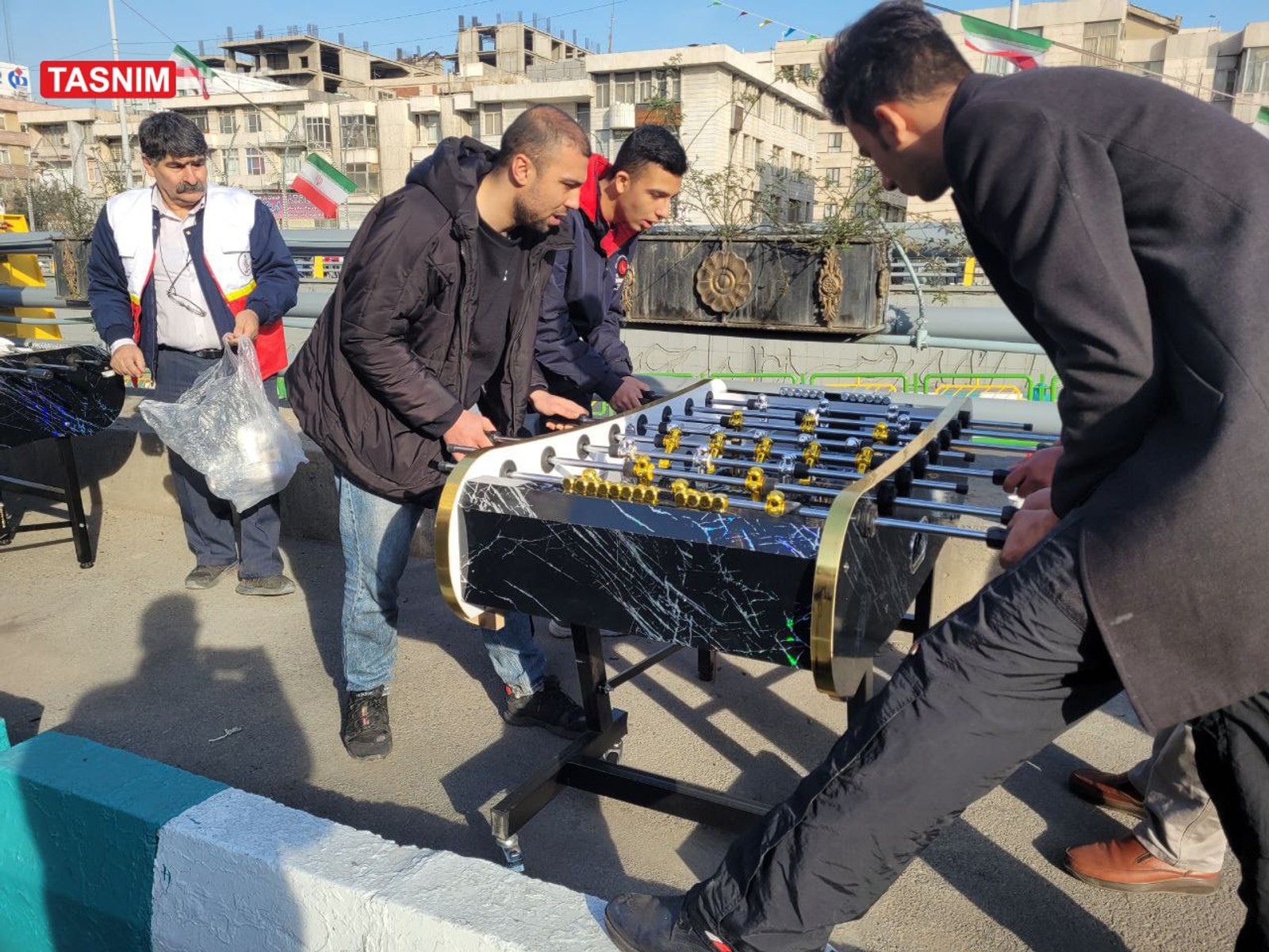 همچنین خبرگزاری تسنیم وابسته به سپاه پاسداران عکسی از راهپیمایی حکومتی ۲۲ بهمن منتشر کرده که در آن دیده می‌شود حکومت برای شرکت‌کنندگان در راهپیمایی میز بازی فوتبال دستی فراهم کرده است.
