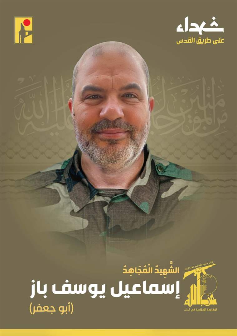 ارتش اسرائیل اعلام کرد اسماعیل یوسفباز، فرمانده منطقه ساحلی حزبالله را در حمله پهپادی در نزدیکی صور لبنان هدف قرار داد و کشت. بنا به گفته ارتش او از مقامهای ارشد شاخه نظامی حزبالله بود و چندین سمت داشته و همچنین در پیشبرد و برنامهریزی حمله موشکی به اسرائیل نقش داشته است.