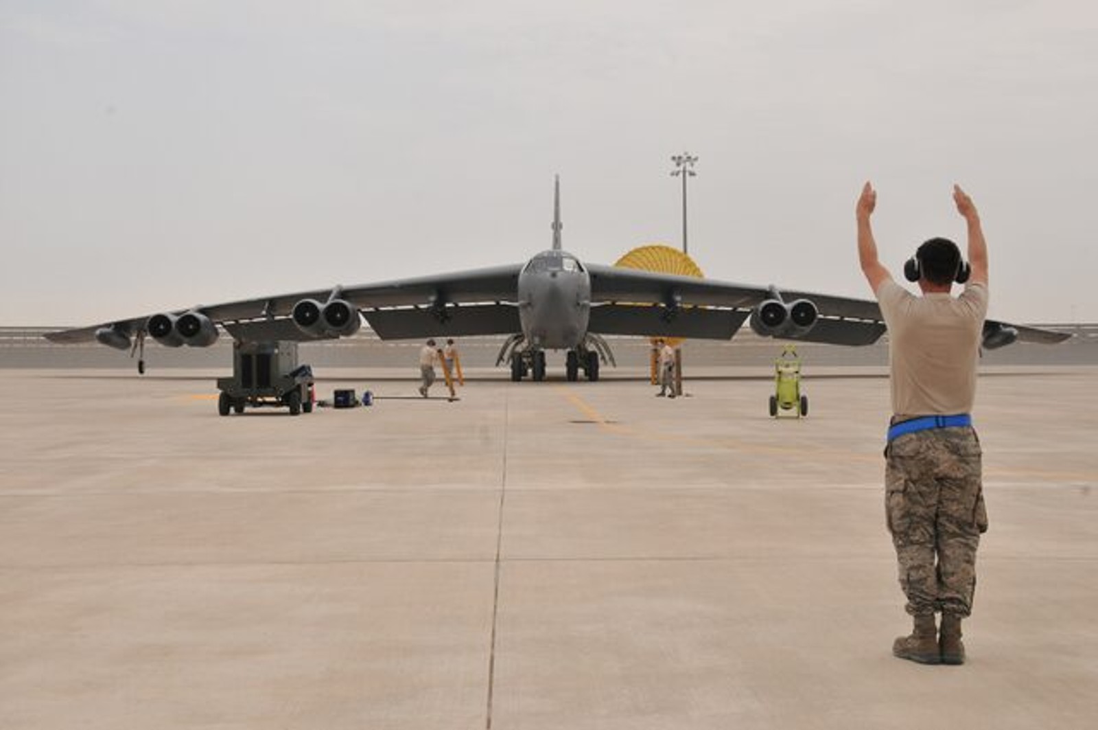 یک بمبافکن بی ۵۲ آمریکا در پایگاه هوایی العدید در قطر
