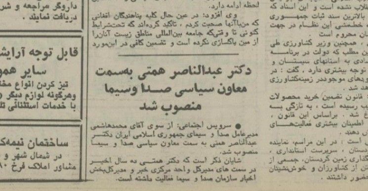 حدود یک سال پس از آغاز ریاست لاریجانی در سازمان صدا و سیما، همتی از این مجموعه به دولت رفت.