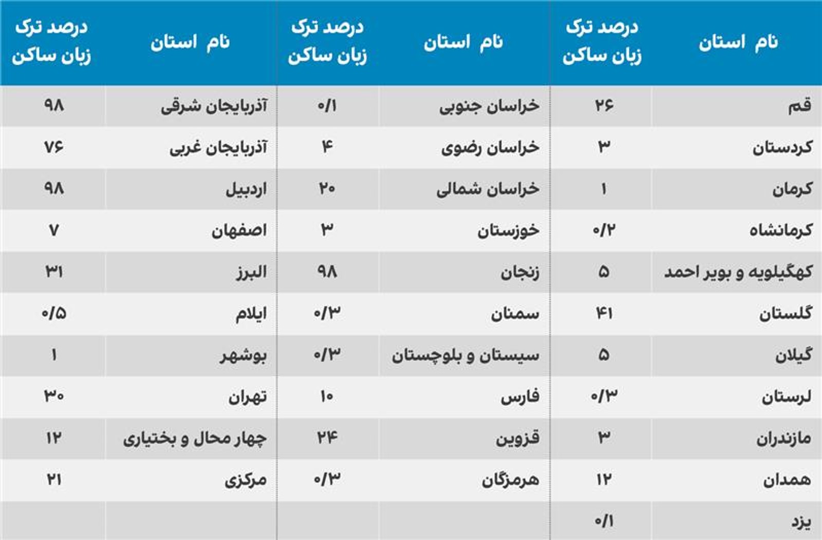 واجد حق رای» و «درصد جمعیت ترکزبان» در سطح استانی را نمایان میکند.