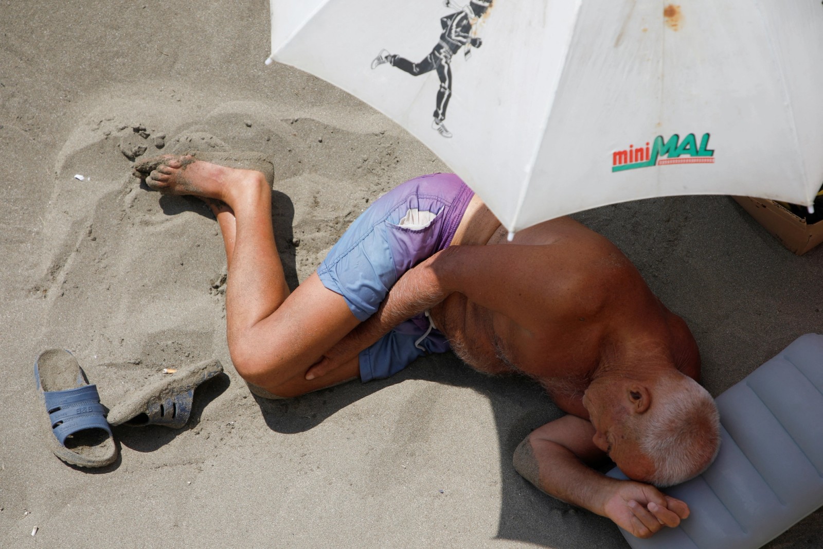استراحت یک مرد در سواحل مونتهنگرو به دنبال گرمای کمسابقه ۴۰ درجه سانتیگرادی در این کشور، ۲۳ مرداد