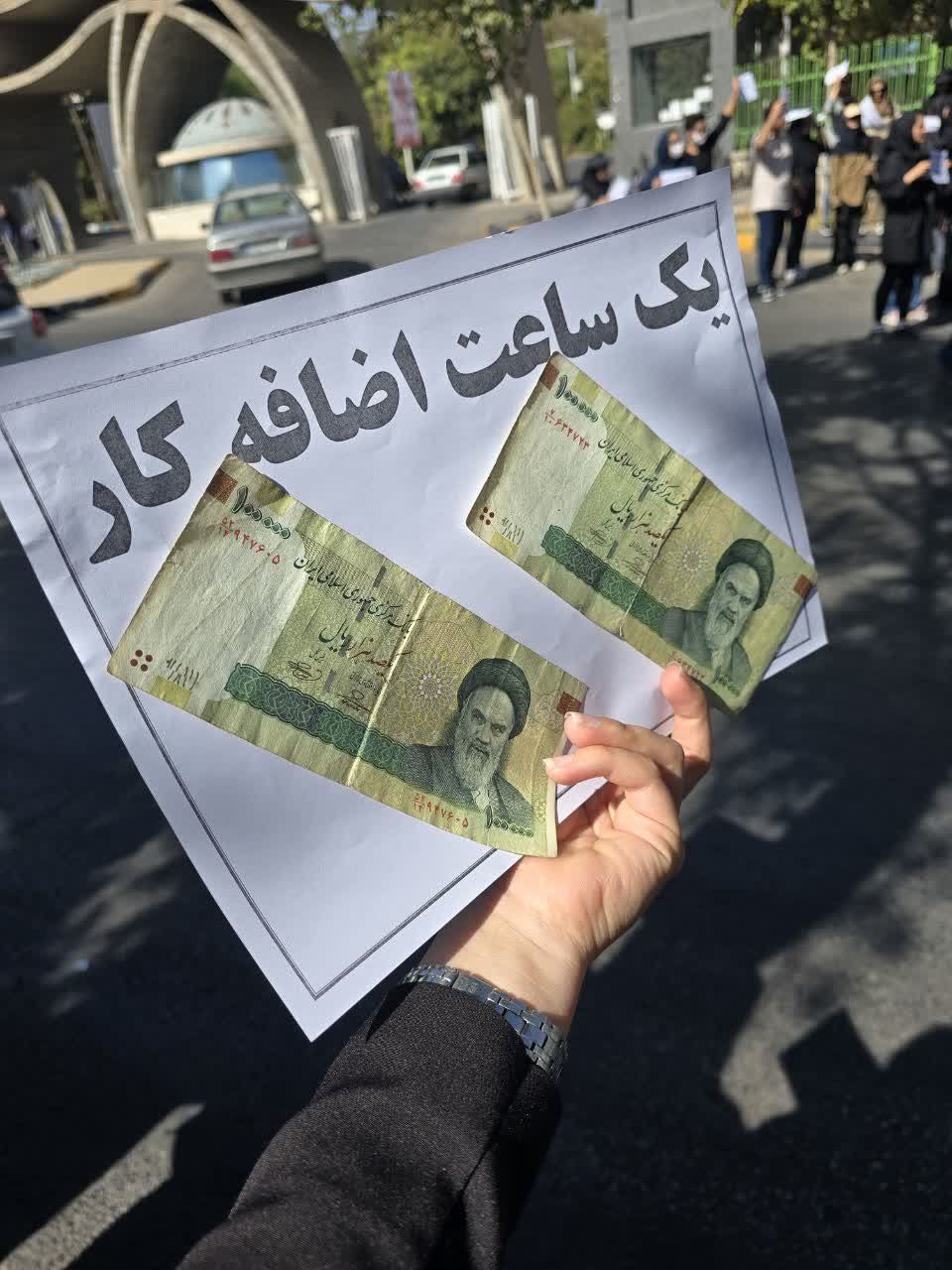 آنها در تجمع خود شعارهایی از جمله «اضافهکار بیست تومن، خجالت خجالت» سردادند.