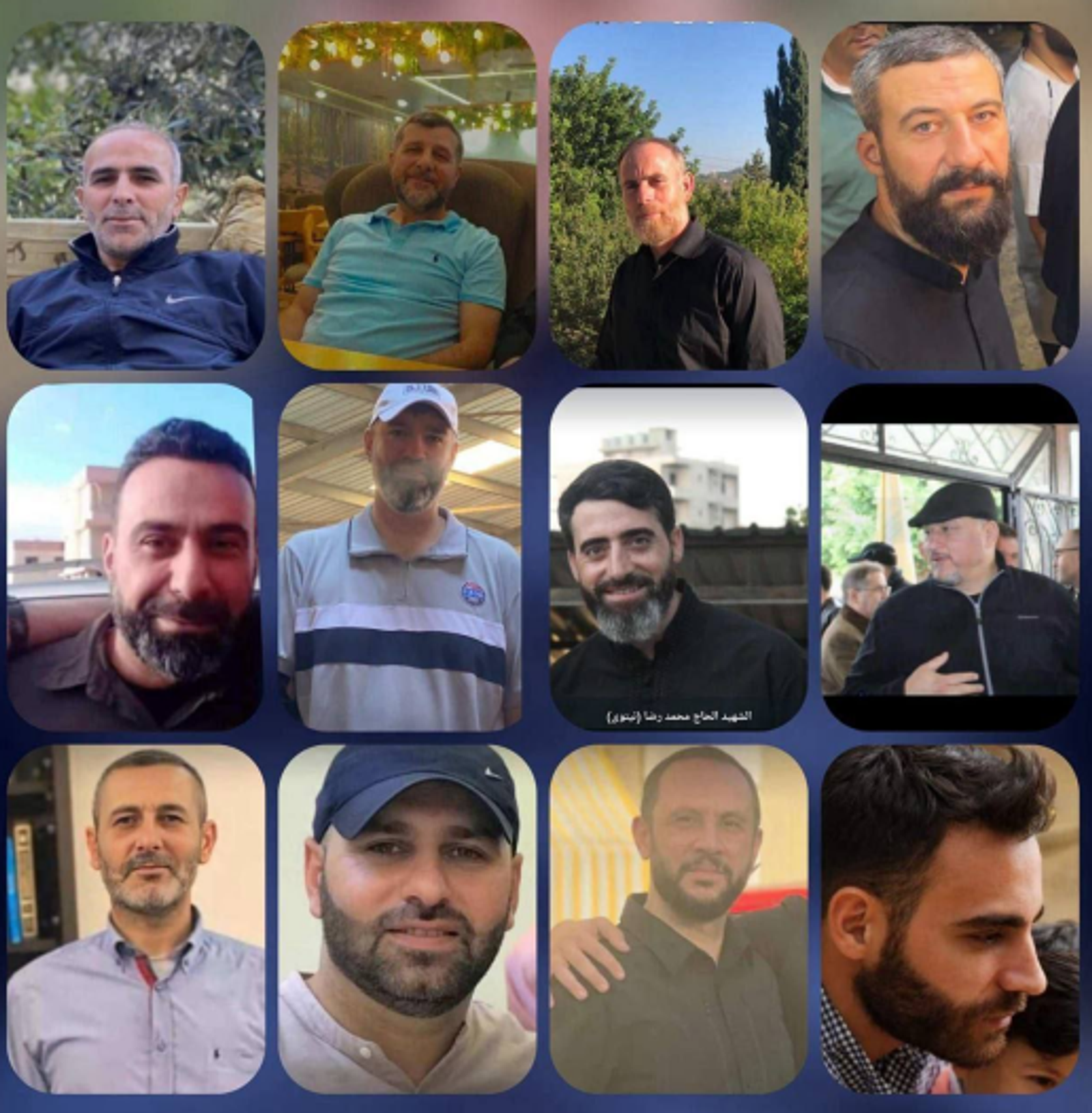 منابع رسانهای نزدیک به حزبالله، نام و تصاویر ۱۲ نفر را به عنوان «فرماندههای شهید یگان رضوان حزبالله» منتشر کردهاند که در جریان حمله هوایی اسرائیل به نشست فرماندههای این یگان همراه با ابراهیم عقیل، فرمانده عملیات حزبالله کشته شدهاند.