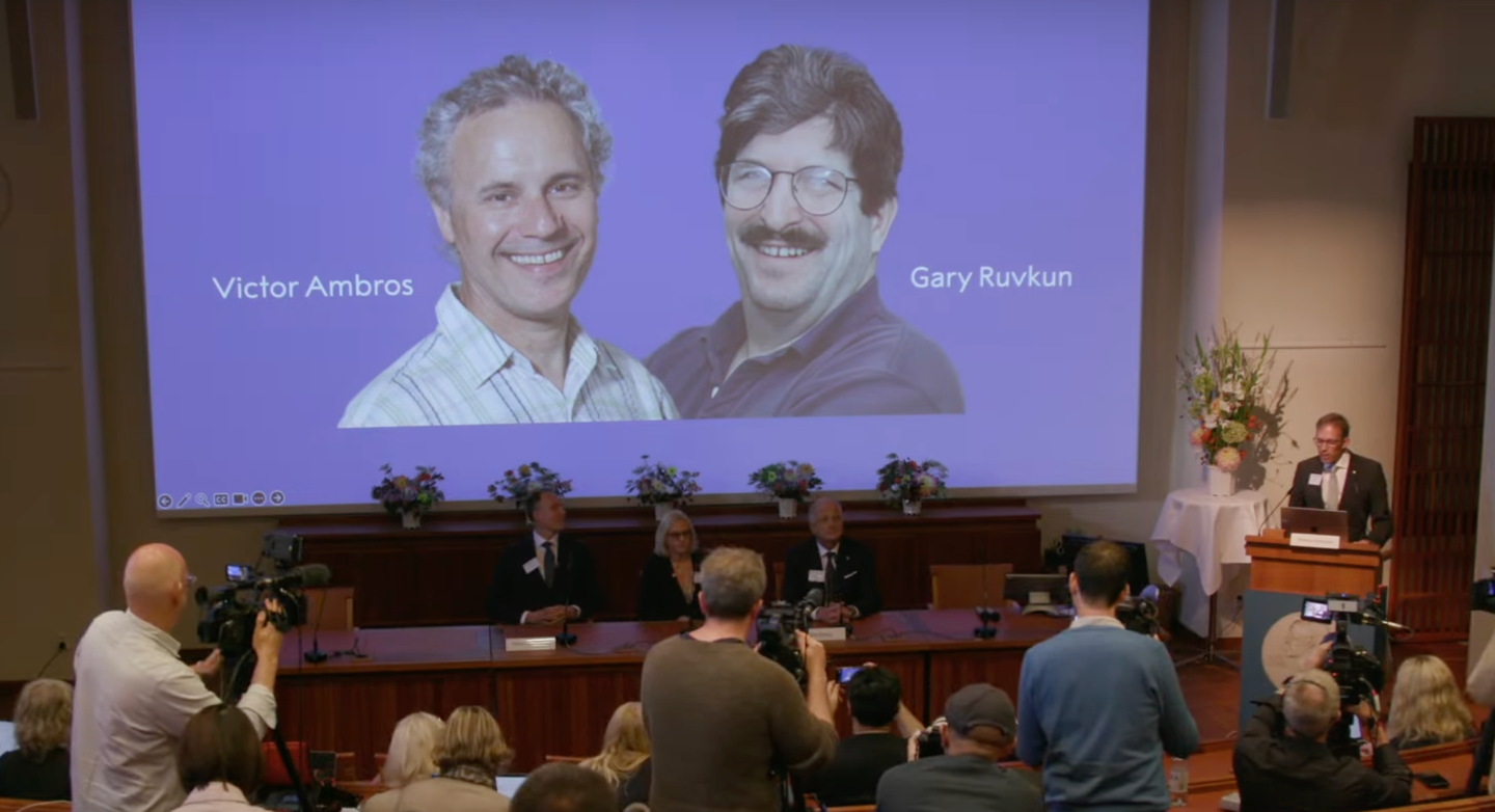توماس پرلمان، دبیر کمیته نوبل، در موسسه کارولینسکا در استکهلم سوئد، ویکتور آمبروس و گری روکون را به عنوان برندگان جایزه نوبل پزشکی و فیزیولوژی سال ۲۰۲۴ معرفی کرد. این جایزه به خاطر کشف میکرو آر.ان.ای (microRNA) به این دو تعلق گرفته است.
