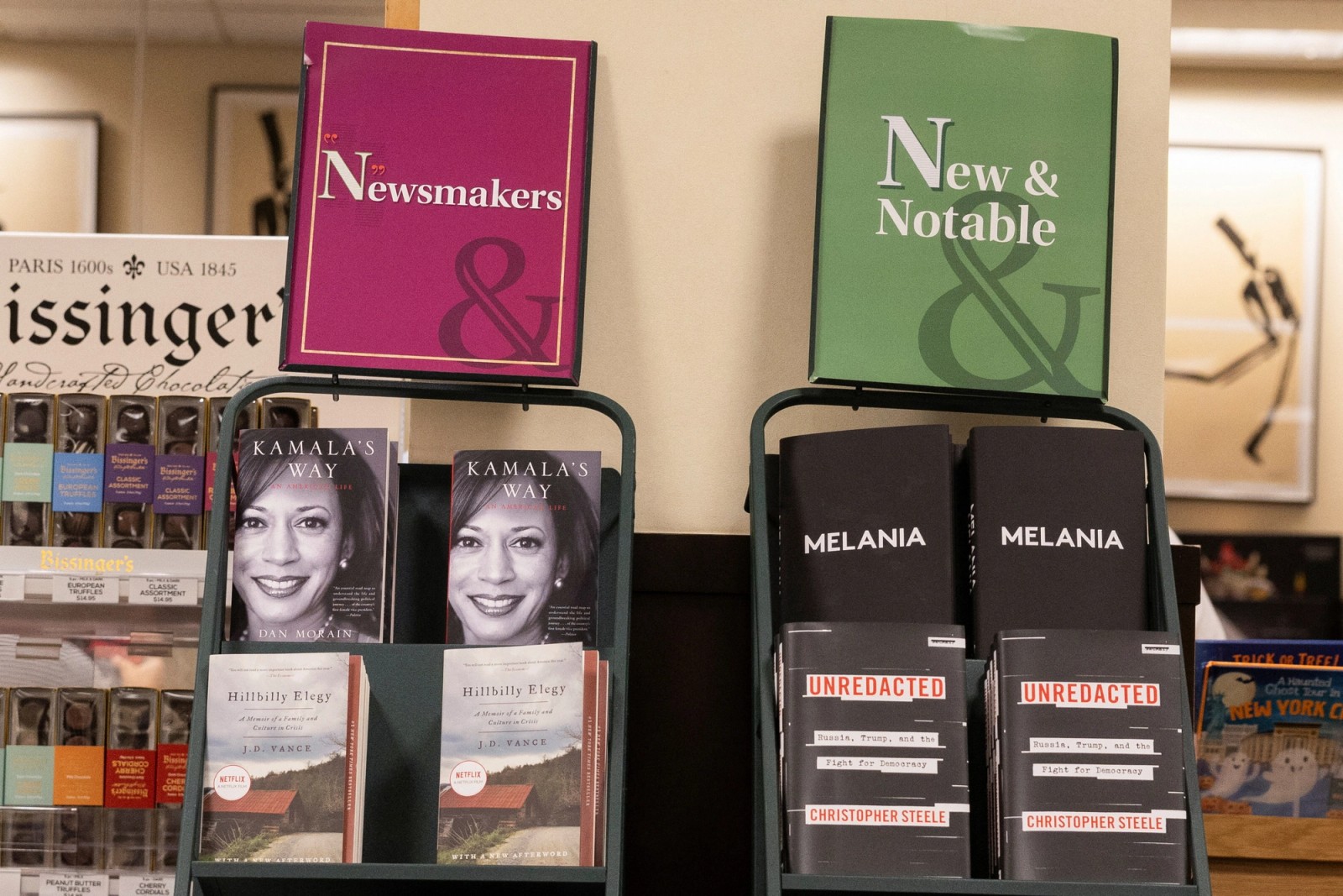 فروش کتاب ملانیا ترامپ در کنار کتابی درباره کامالا هریس، نیویورک، ۱۷ مهر