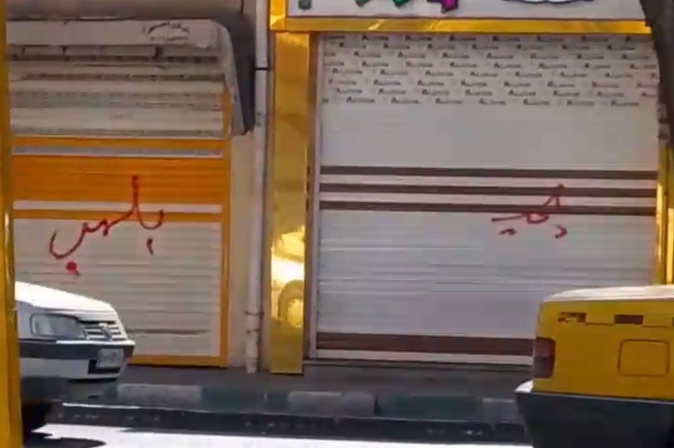 تصاویر رسیده به ایراناینترنشنال نشان میدهند ماموران روی کرکره شماری از مغازههایی که به اعتصاب پیوستهاند، با رنگ قرمز کلمه «پلمب» را نوشتهاند.