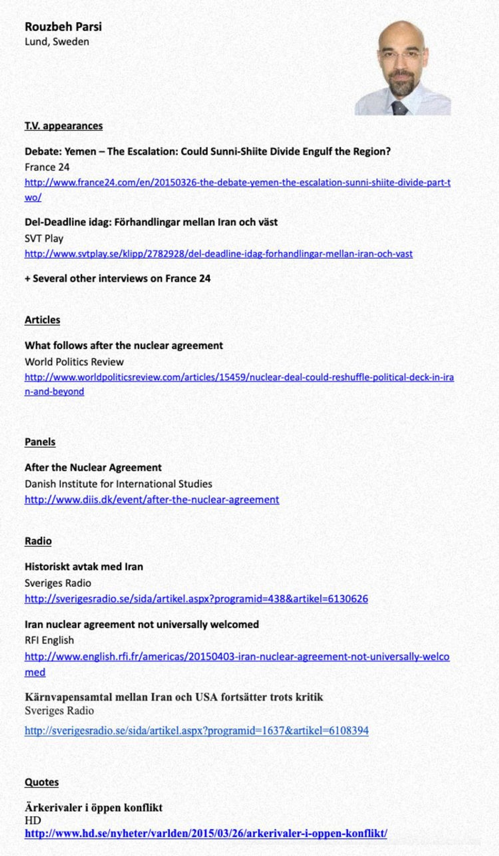 روزبه پارسی از موسسه امور بین‌الملل سوئد در پاسخ به سوال ایران‌اینترنشنال درباره این ایمیل‌ها گفته بود: «این برای تحلیل‌گران و دانشگاهیان امری کاملا طبیعی است که با مقامات و متخصصان طرف‌های مختلف در یک مذاکره یا تنش دیدار کنند تا بتوانند تجزیه و تحلیل خود را غنی‌تر کنند.»