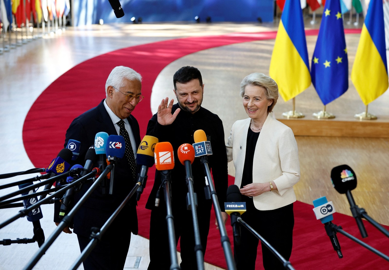 هم‌زمان با این تصمیم دولت ترامپ، سران اروپا بار دیگر برای اعلام حمایت از اوکراین، در بروکسل، مقر اتحادیه اروپا، گرد هم آمدند و خواستار افرایش هزینه‌های دفاعی شدند.