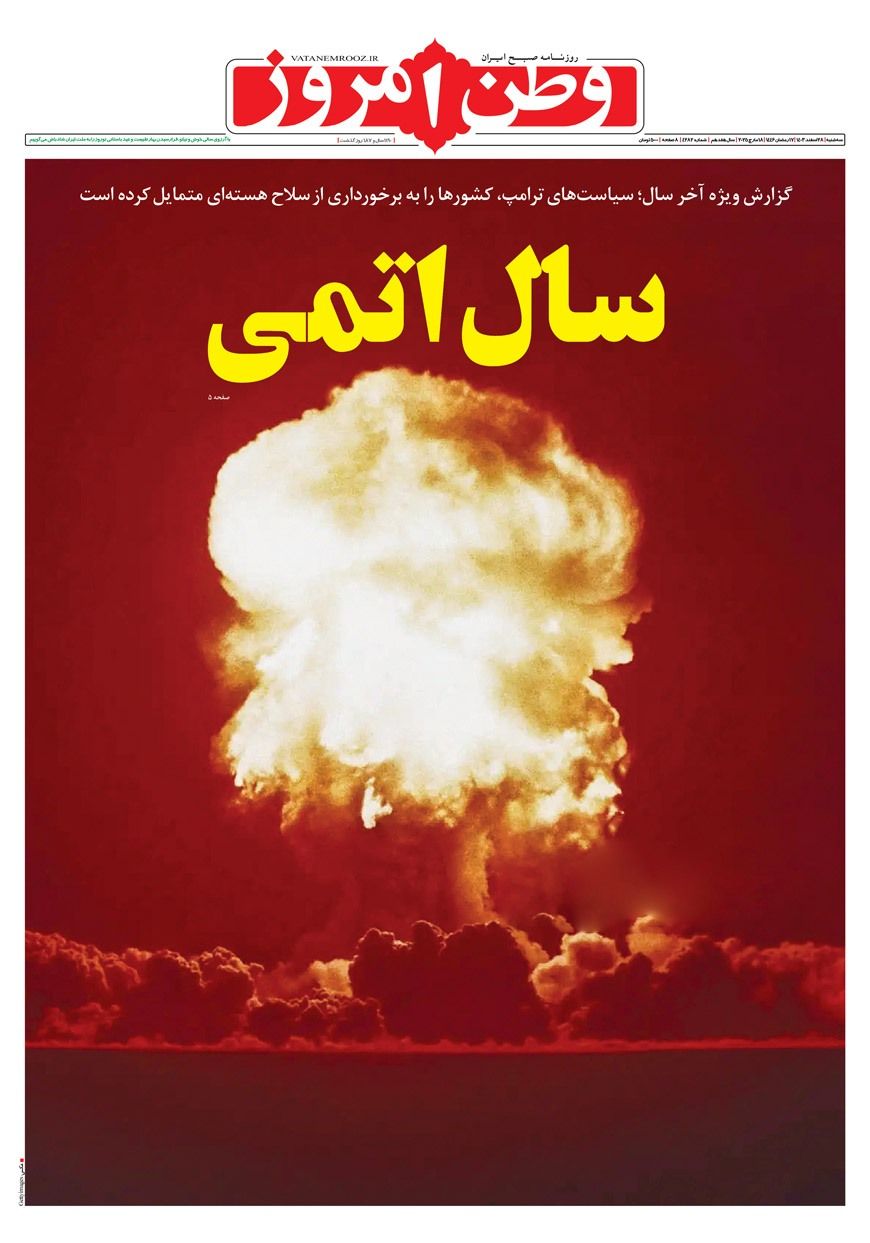 وطن امروز همچنین سیاستهای دولت ترامپ را مورد انتقاد قرار داد و نوشت تحولات اخیر «کشورها را به برخورداری از سلاح هستهای متمایل کرده» است.