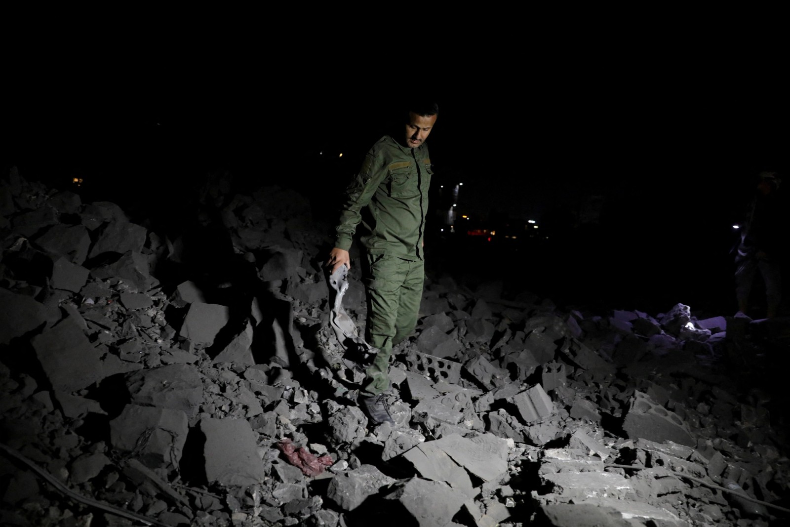 ویرانی‌های برجا مانده از حملات هوایی آمریکا به مواضع حوثی‌ها، صنعا، چهارم فروردین
