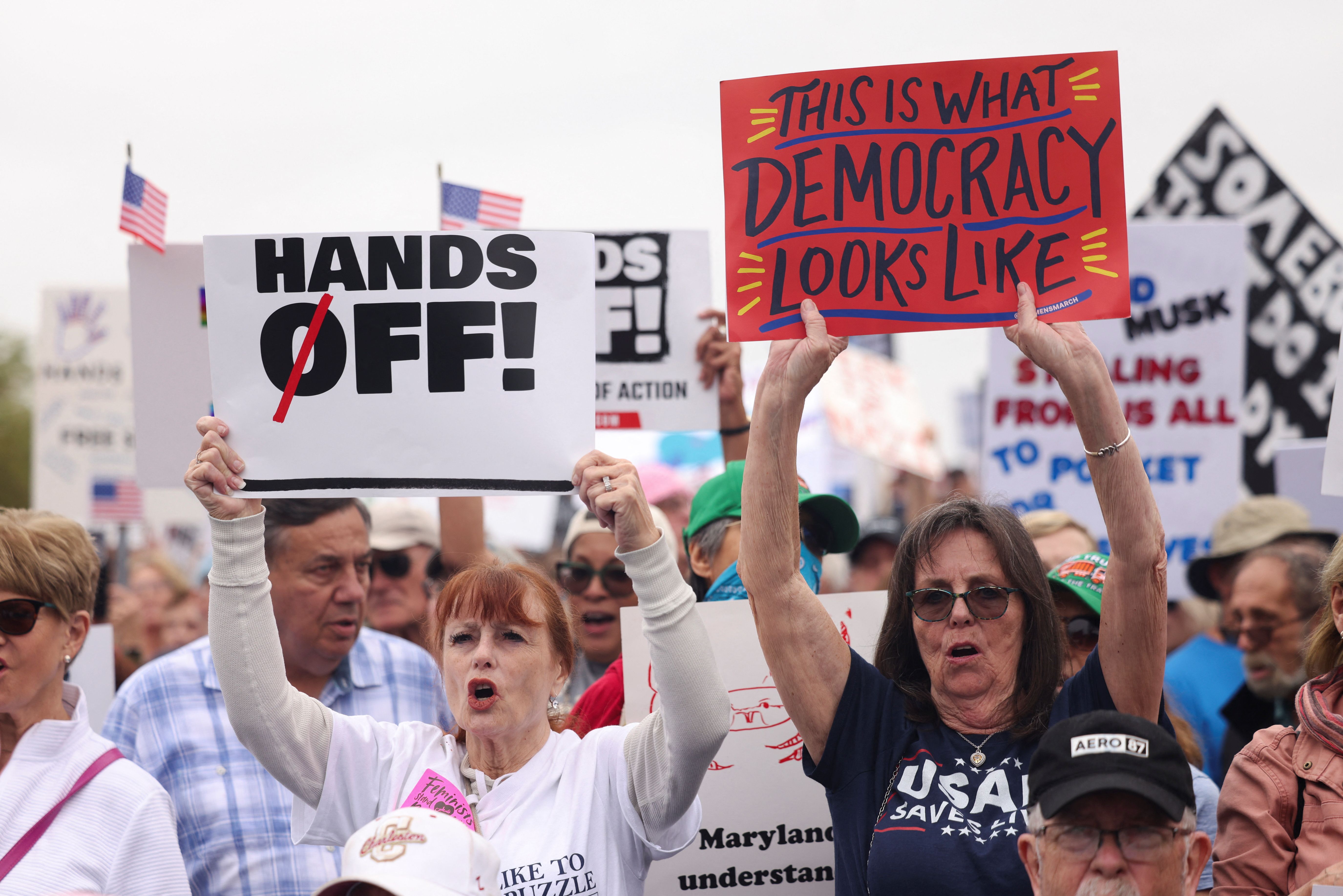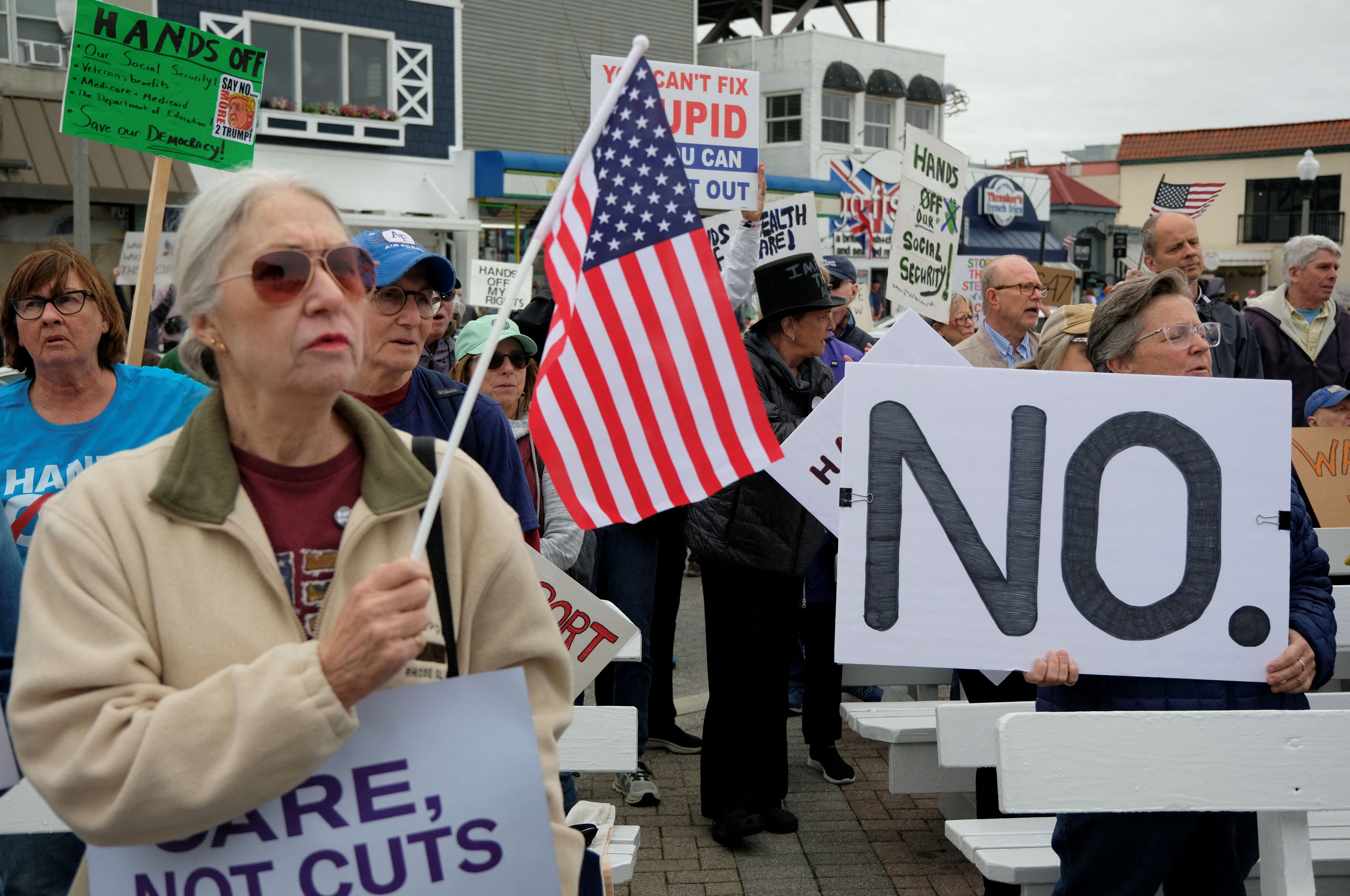 صدها نفر ۱۶ فروردین در مقابل ساختمان مرکزی اداره تامین اجتماعی در نزدیکی بالتیمور دست به تجمع زدند تا به کاهش نیرو و بودجه این نهاد که خدمات حیاتی به سالمندان و افراد دارای معلولیت ارائه میدهد، اعتراض کنند. رویترز فضای حاکم بر این تجمع را «خشمآلود» توصیف کرد.
