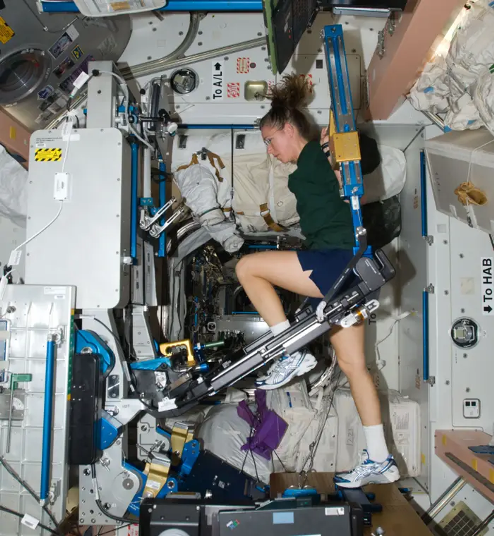 پزشکان در سفرهای فضایی ابتدایی متوجه شدند که استخوانهای فضانوردان در شرایط بیوزنی تحلیل میرود. اکنون ساکنان ایستگاه روزانه چند ساعت ورزش میکنند.