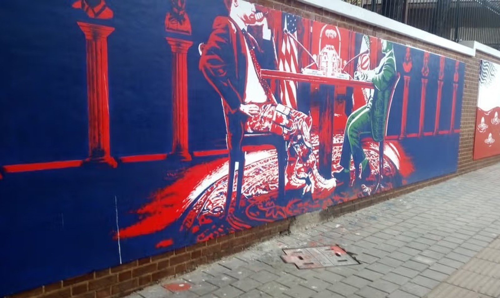 دیوارنگاره‌ای در تهران، در نکوهش مذاکره با آمریکا