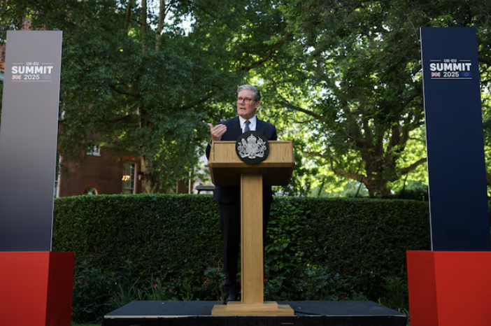 او همراه با امانوئل مکرون، رییسجمهوری فرانسه، و مارک کارنی، نخستوزیر کانادا، تهدید به «اقدامات مشخص» علیه دولت بنیامین نتانیاهو کرد. استارمر گفت تنها راه آزادی گروگانها و توقف بحران انسانی، آتشبس فوری است.