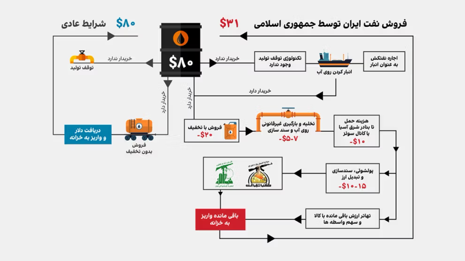 شیوه فروش نفت ایران توسط جمهوری اسلامی با تخفیف بالا جهت دور زدن تحریمها