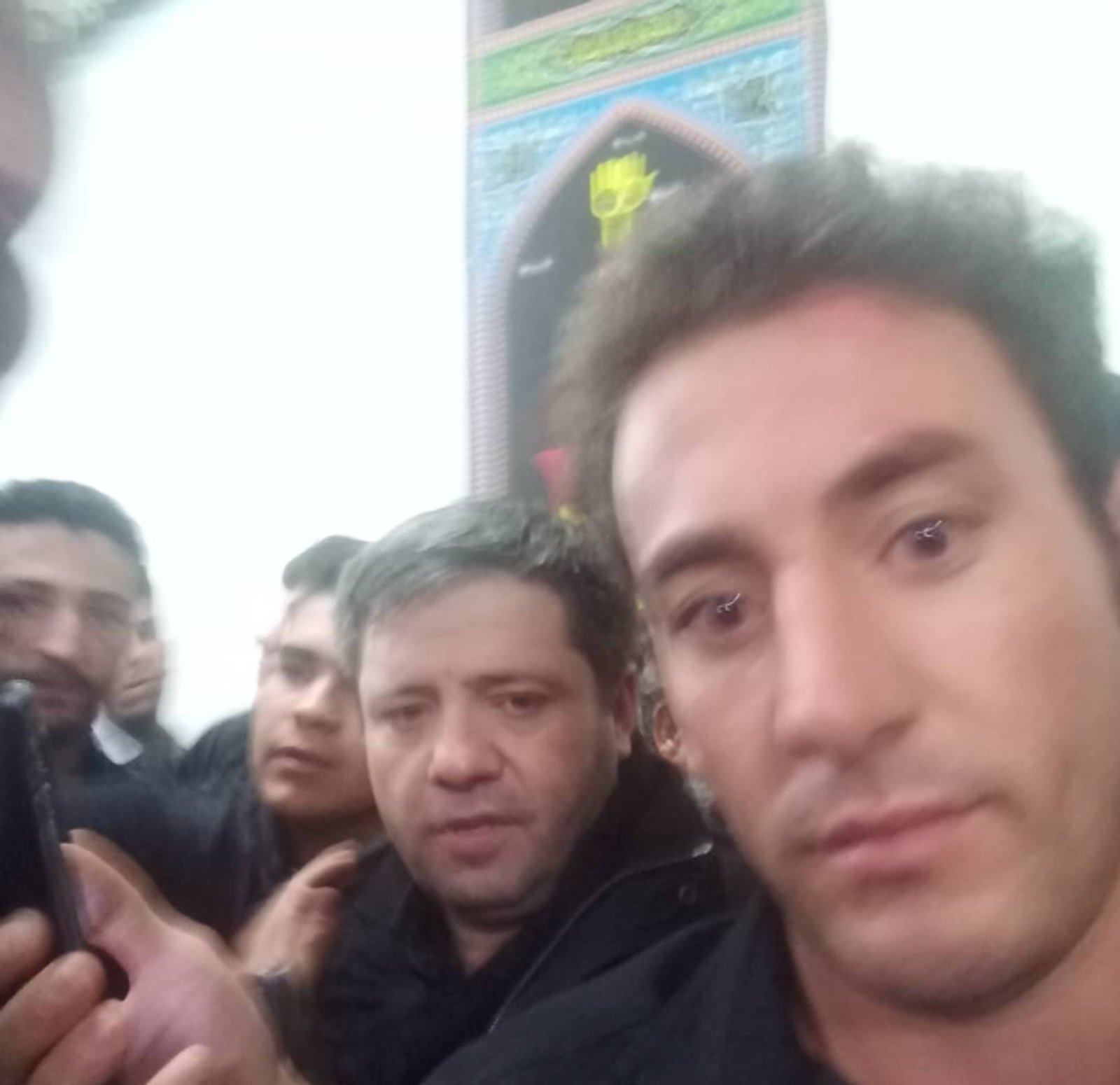 تصویری که بهمن فرزانه در مهرماه ۱۳۹۸ از خود در یک هیات عزاداری در کنار نادر جوادی منتشر کرده است. جوادی از جمله مداحانی است که در حضور خامنه‌ای برنامه اجرا می‌کند.