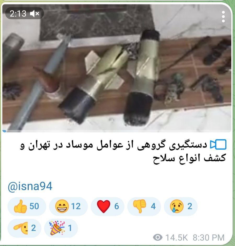 فرانس۲۴ گزارش داد رسانههای حکومتی در ایران کوشیدهاند با انتشار گزارشهایی درباره بازداشت «عوامل موساد» و «کشف تسلیحات» آنها، روایت رسمی جمهوری اسلامی را تقویت کنند.