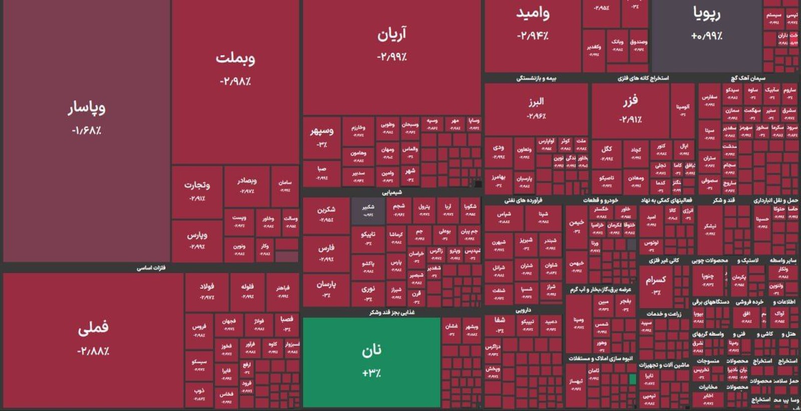 ۹۹ درصد بازار در وضعیت قرمز