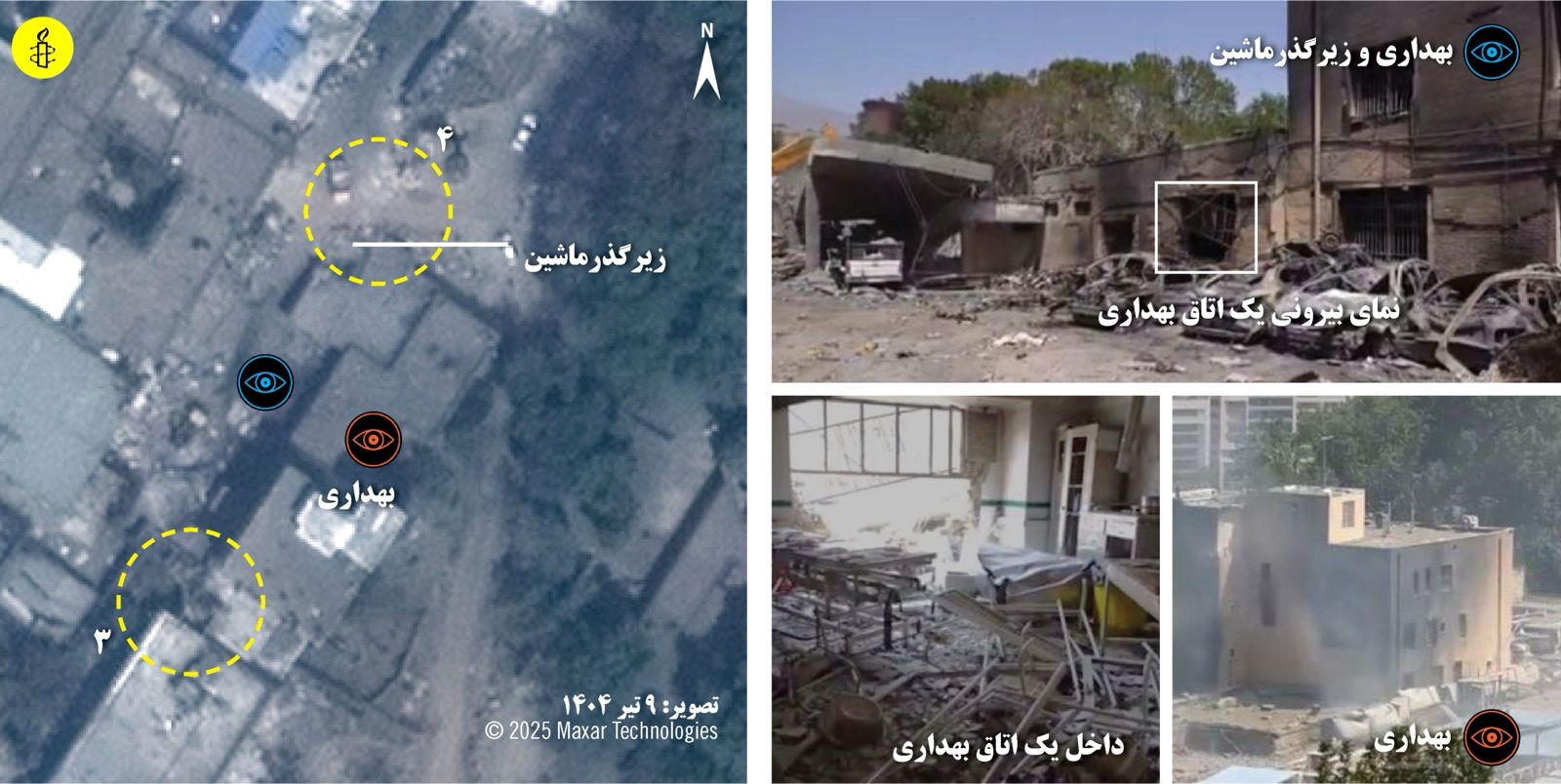 در بیانیه سازمان عفو بینالملل تاکید شده است: «آزمایشگاه شواهد سازمان عفو بینالملل تصاویر ماهوارهای پیش و پس از حملات را تحلیل کرده و ۲۲ ویدیو و ۵۹ عکس را راستیآزمایی کرده است. این شواهد، تخریب و آسیب گسترده در شش نقطه از بخشهای جنوبی، مرکزی و شمالی مجموعه زندان اوین را نشان میدهند.»
