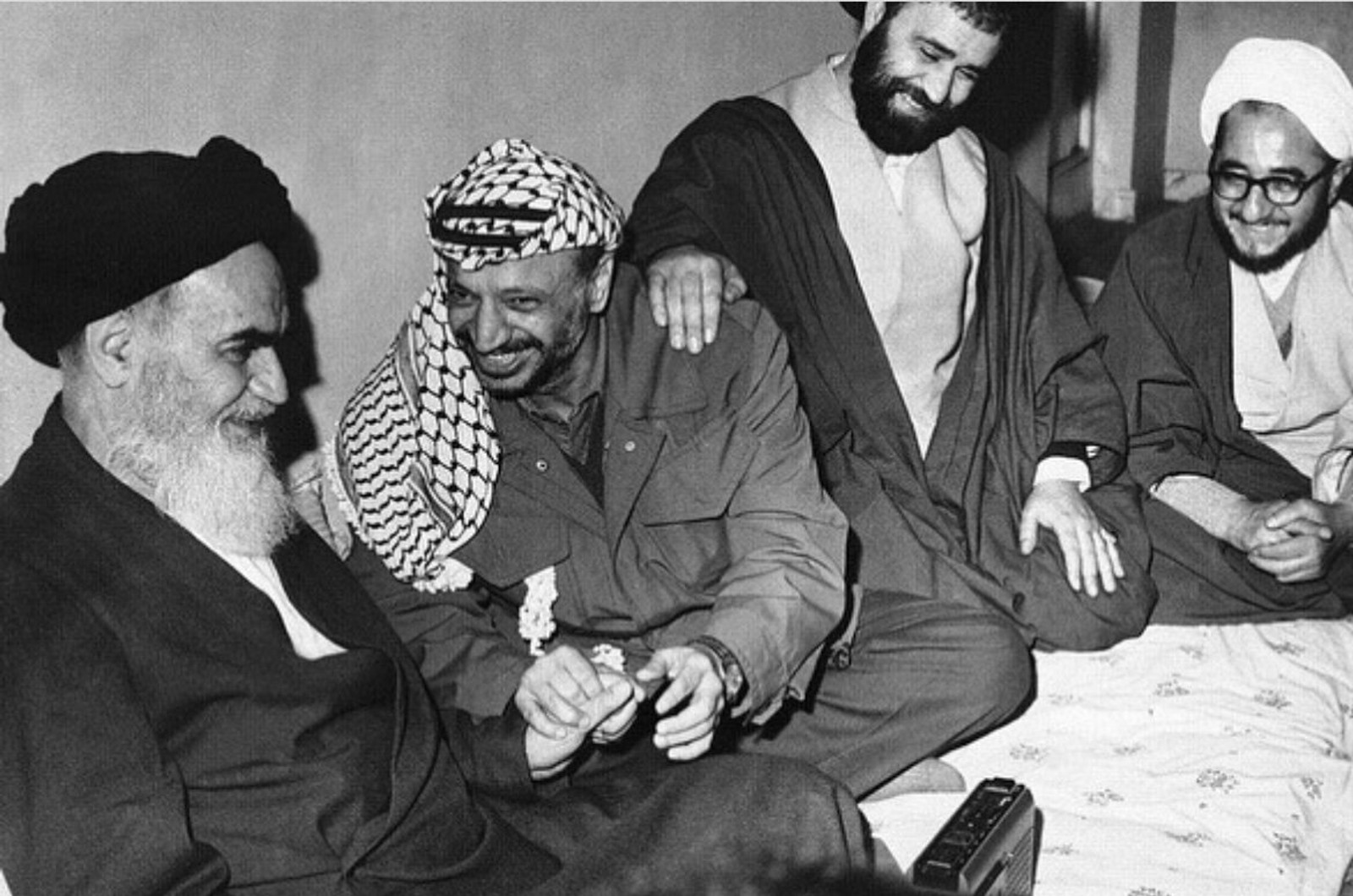 یاسر عرفات، رییس سازمان آزادی‌بخش فلسطین، در دیدار با روح‌الله خمینی، ۱۳۵۷