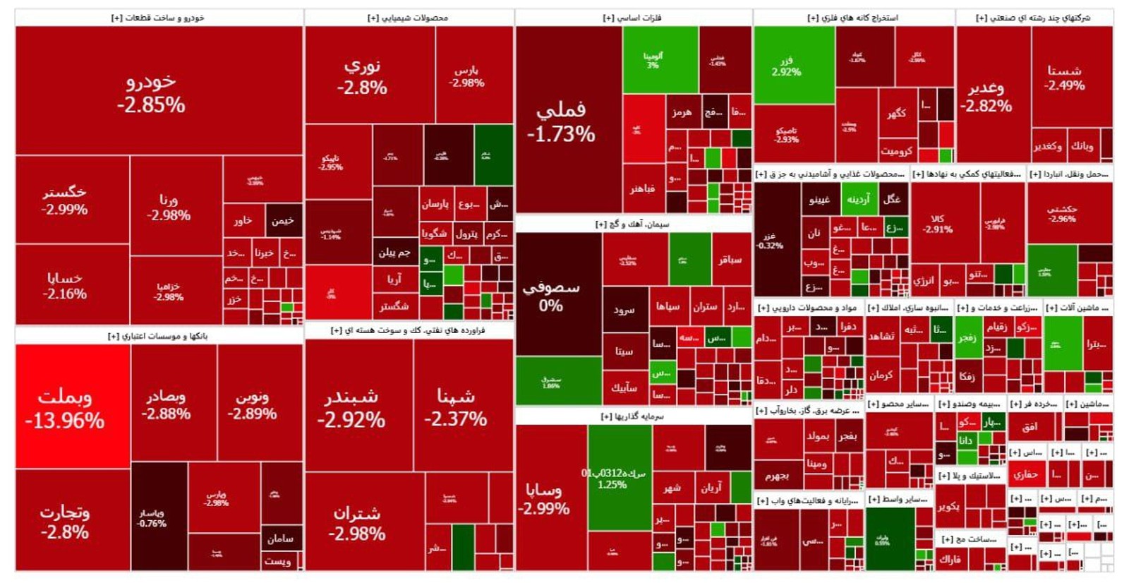 در این روز ۸۳ درصد از نمادهای بازار منفی شدند و شاخص کل هم‌وزن، چهار هزار و ۲۵۵ واحد ریزش کرد.