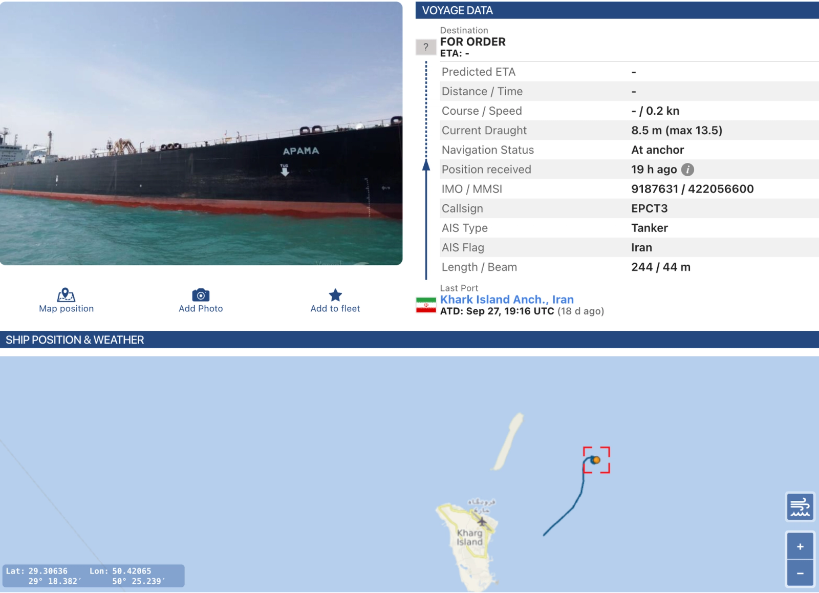 تیمراستیآزمایی ایراناینترنشنال چهارشنبه ۲۳ مهر با بررسی موقعیت مکانی ۹۴ کشتی حامل پرچم جمهوری اسلامی که از سوی آمریکا تحریم شدهاند، دریافت که ارسال اطلاعات مکانی دستکم ۳۶ نفتکش دوباره قطع شده است.