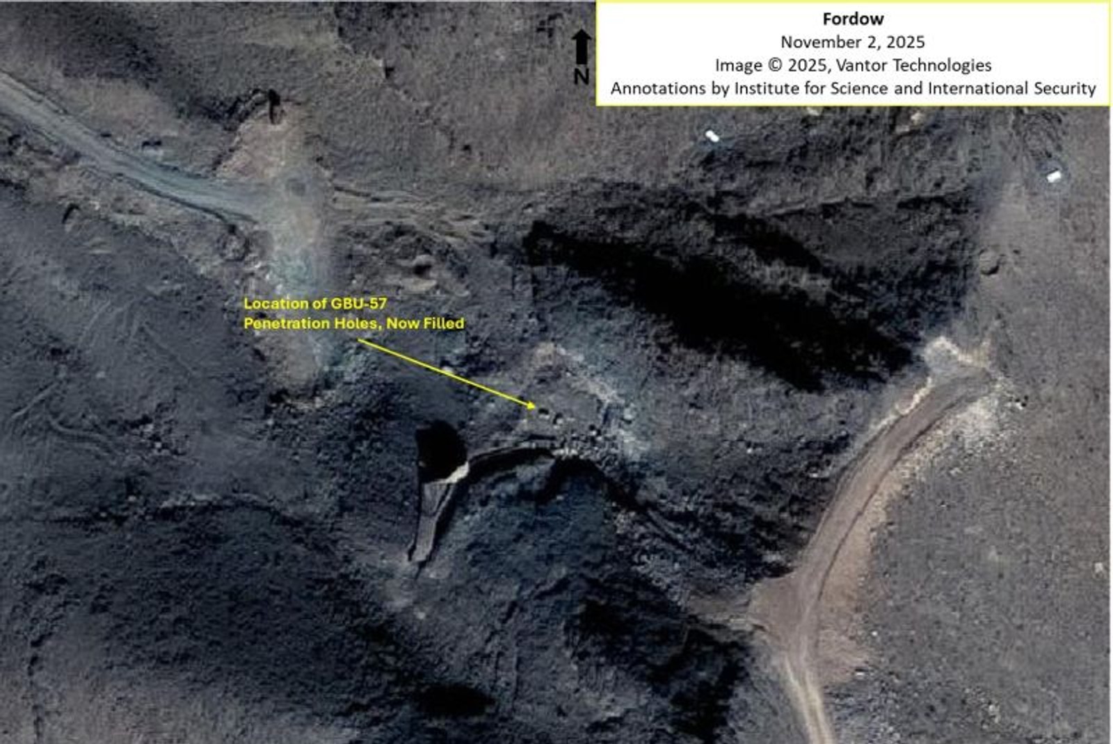 تصاویر ماهوارهای از ورودی تونل شمالی در مجتمع هستهای اصفهان - عکس از موسسه علوم و امنیت بینالمللی