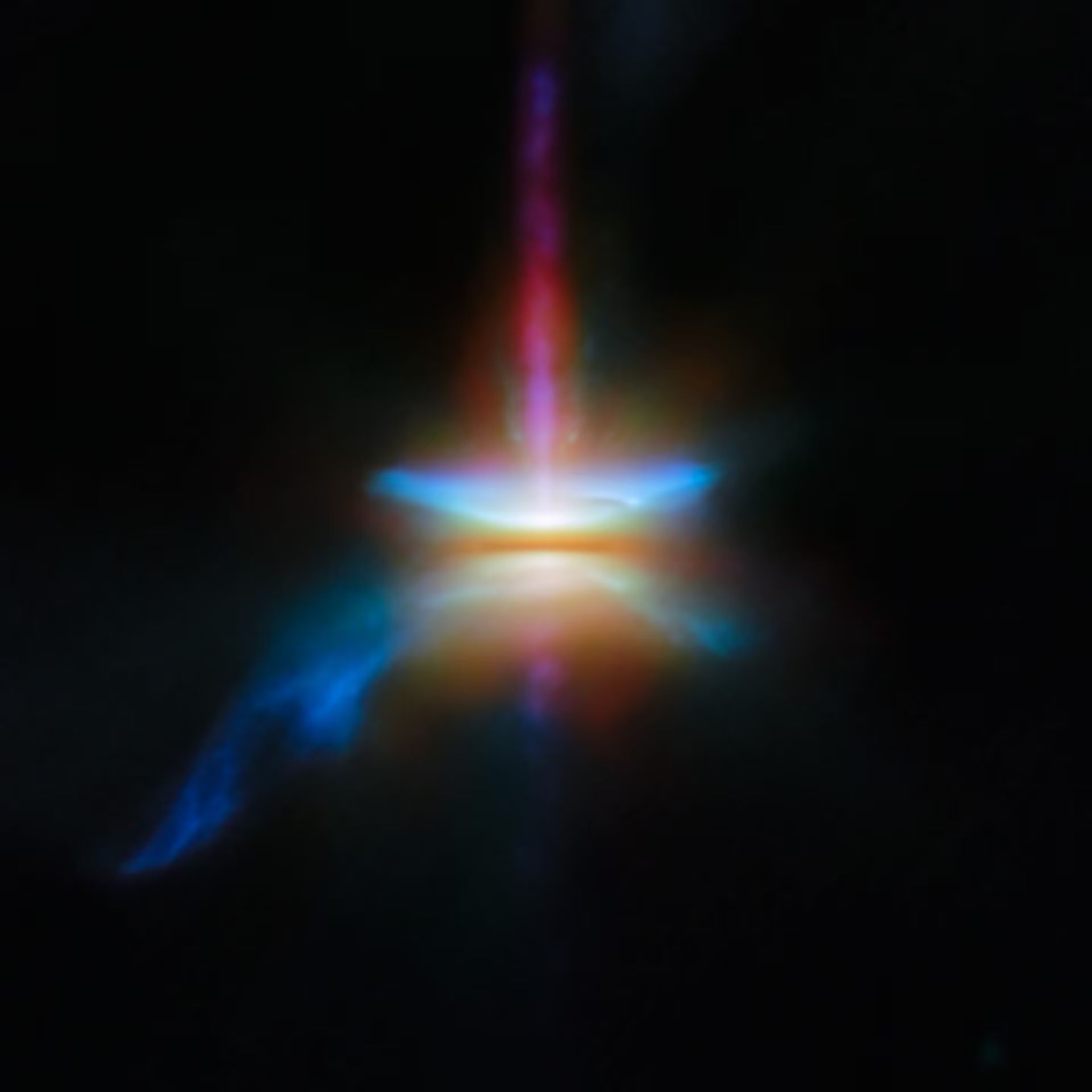 این تصویر که از طولموجهای گوناگون نور و با رنگهای مختلف ساخته شده، نشان دهنده محیطی پویا است؛ جایی که هم دانههای ریز غبار و هم جتهای عظیم در فرایند شکلگیری سیارههای جدید نقش دارند.