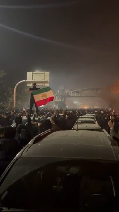 گروهی از معترضان در تهران در جریان اعتراضات شامگاه جمعه ۱۹ دیماه در تهران، پرچمهای شیر و خورشید را به همراه داشتند و آنها را در میان جمعیت به اهتزاز درآوردند.