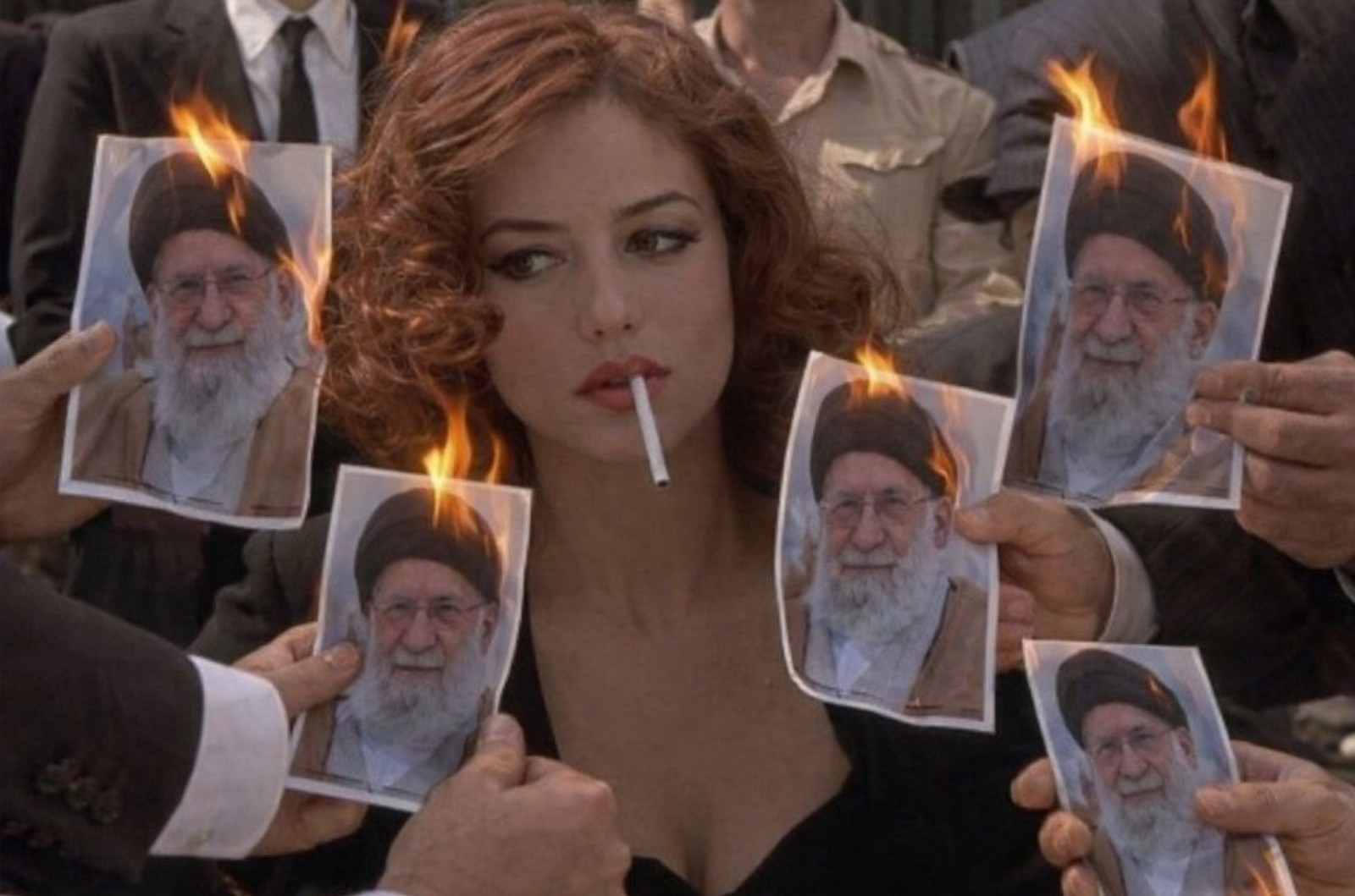بازسازی تصویر پایانی فیلم «مالنا» با بازی مونیکا بلوچی این بار با عکس در حال سوختن خامنه‌ای به‌جای فندک در روزهای اخیر به‌طور گسترده بازنشر شده است.