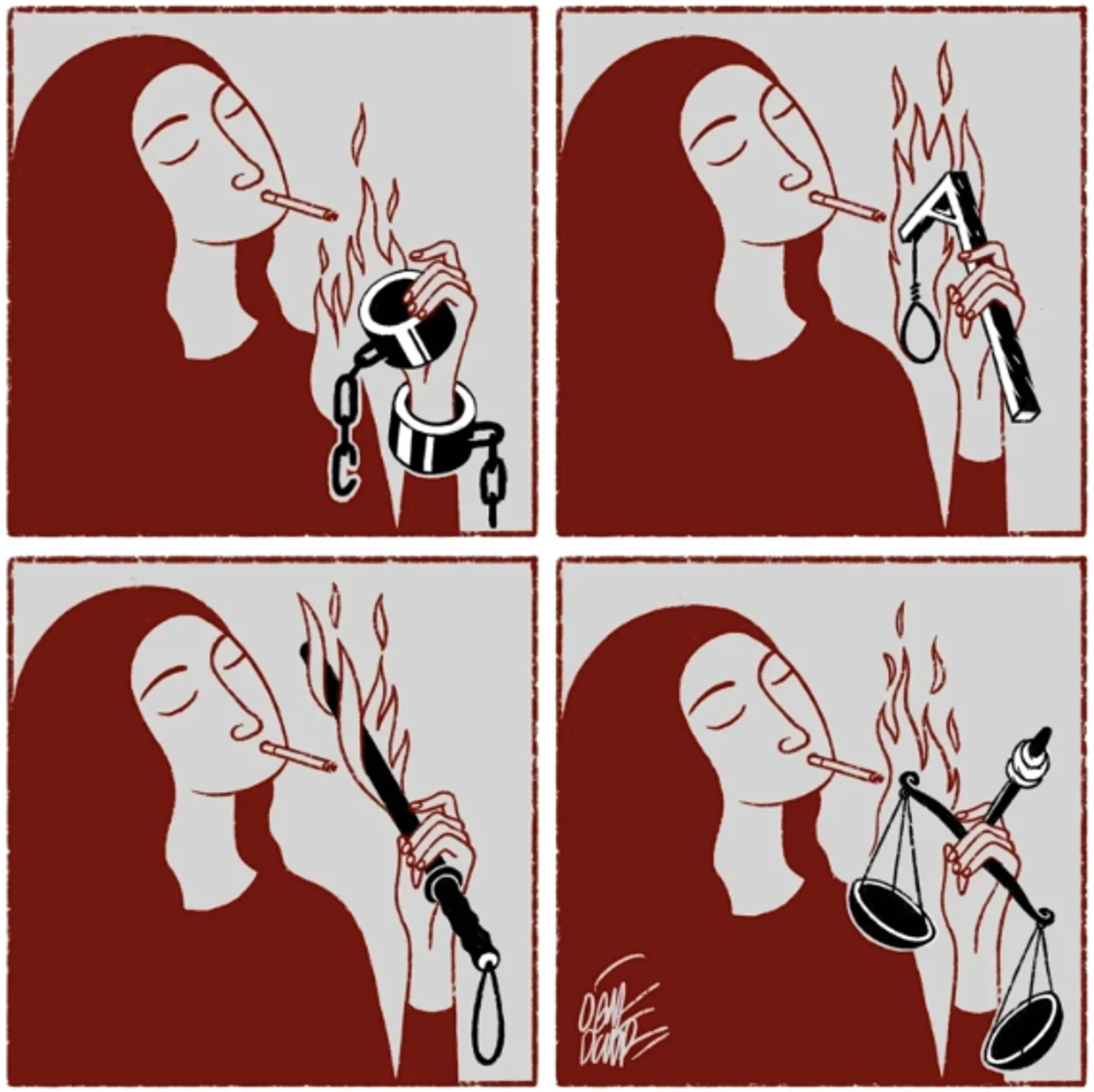 در توضیح این تصاویر آمده است: «زنان فرانسه در حمایت از زنان ایران ایستاده‌اند. فعالان فمینیست راست‌گرای فرانسوی از گروهCollectif Nemesis ترند پرطرفدار روشن کردن سیگار با تصویر خامنه‌ای توسط زنان ایرانی را بازسازی کردند. فمینیست‌های چپ‌گرا چه زمانی حمایت خود را نشان خواهند داد؟»