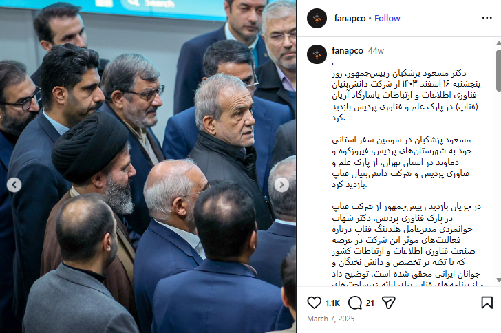 مسعود پزشکیان، رییس دولت در جمهوری اسلامی، ۱۶ اسفندماه ۱۴۰۳ از عملیات ساختمانی این پروژه بازدید کرد. در جریان این بازدید، شهاب جوانمردی، مدیرعامل هلدینگ فناپ، جزییات و اهداف این پروژه را برای او توضیح داد. سفیر چین نیز از این پروژه بازدید کرده است.