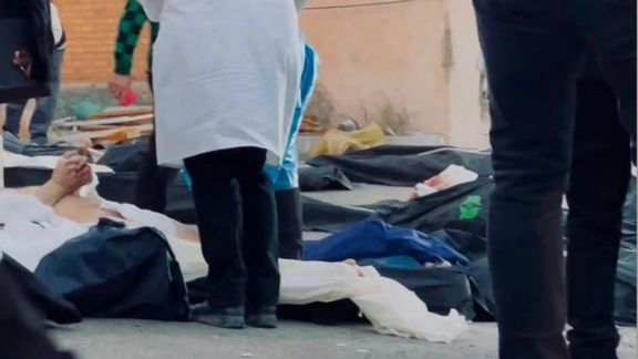 تصاویر رسیده به ایراناینترنشنال، پیکر یک معترض جانباخته را در کهریزک نشان میدهد که دستهایش بسته شده است.