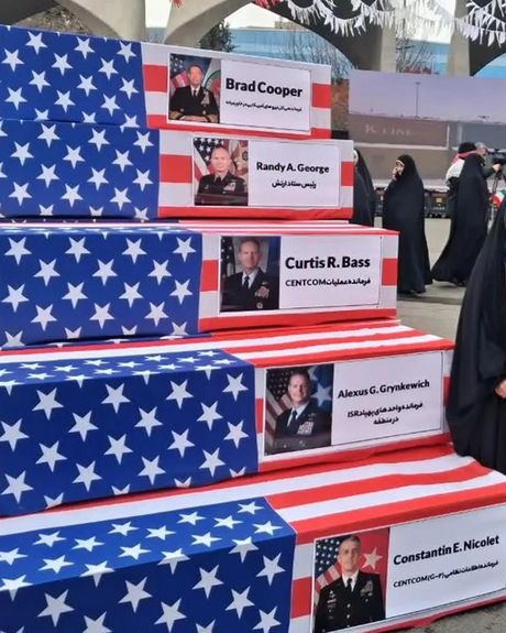 در این تصاویر تابوتهای منتسب به رندی آلن جورج، رییس ستاد ارتش آمریکا، برد کوپر، فرمانده ستاد فرماندهی مرکزی (سنتکام) وکرتیس باس، فرمانده عملیات سنتکام، دیده میشوند.