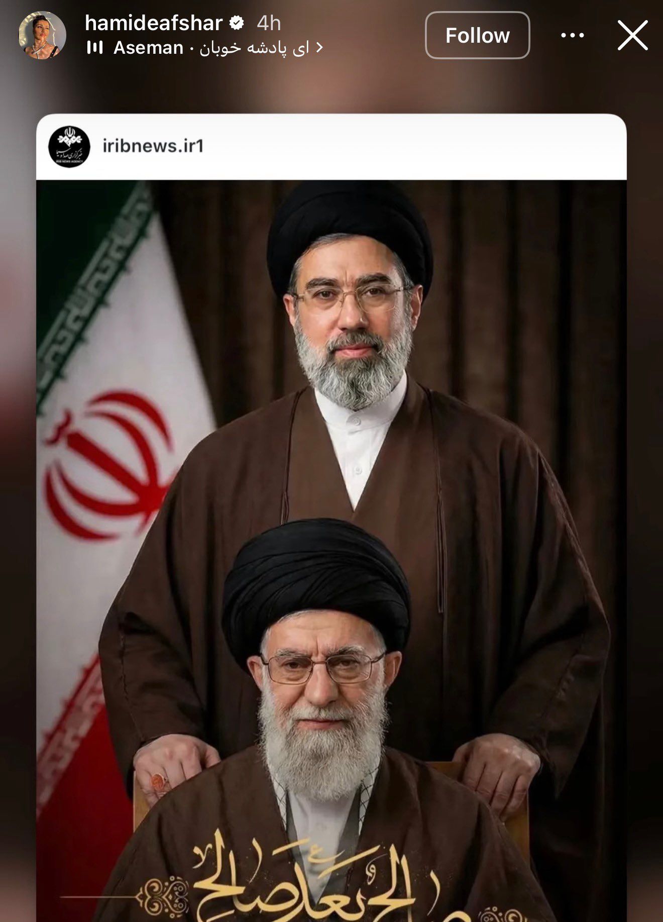 حمیده افشار چند ساعت پیش از انتشار این خبر از سوی لومر، پستی از صداوسیمای جمهوری اسلامی درباره انتخاب مجتبی خامنهای بهعنوان رهبر جدید جمهوری اسلامی را در صفحه اینستاگرام خود استوری کرده و ترانه «پادشه خوبان» را به آن اضافه کرده بود.