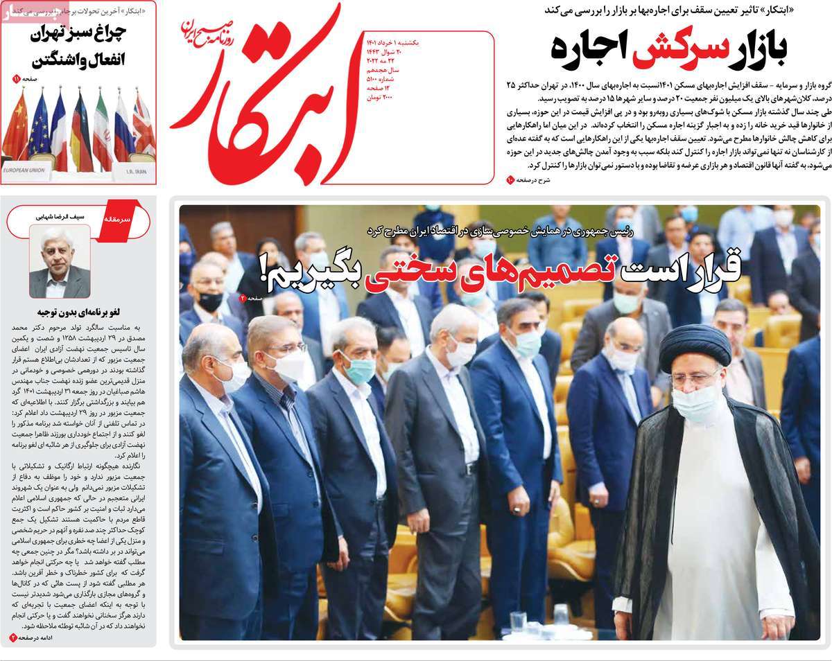 اتجاهان مختلفان إلى أبعد الحدود، تصورهما الصحف الإيرانية، اليوم الأحد 22 مايو (أيار) 2022، حول الإجراءات الاقتصادية الأخيرة لحكومة إبراهيم رئيسي الأصولية.