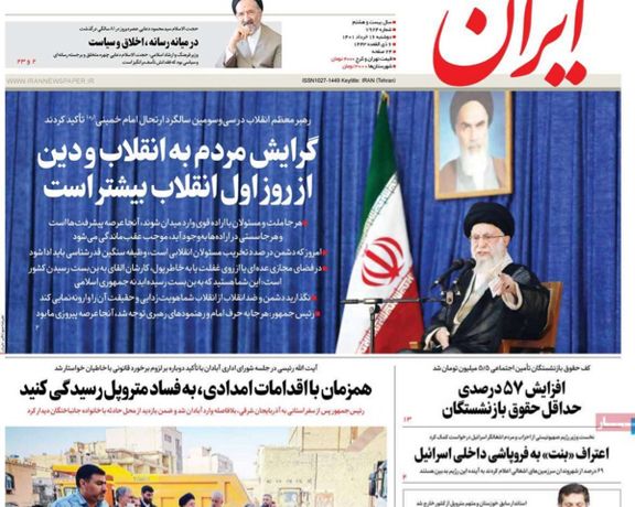 وفي شأن آخر، علقت بعض الصحف مثل "اعتماد" على هامش مراسم الذكرى السنوية لموت مؤسس الجمهورية الإسلامية، روح الله الخميني، في إيران، حيث اعترض مشاركون في الحفل كلمة حفيد الخميني حسن الخميني وافتعلوا ضجيجا لمنعه من إلقاء كلمته، بسبب موقفه من سياسات النظام وانتقاداته الضمنية لطريقة إدارة إيران تحت حكم المرشد.